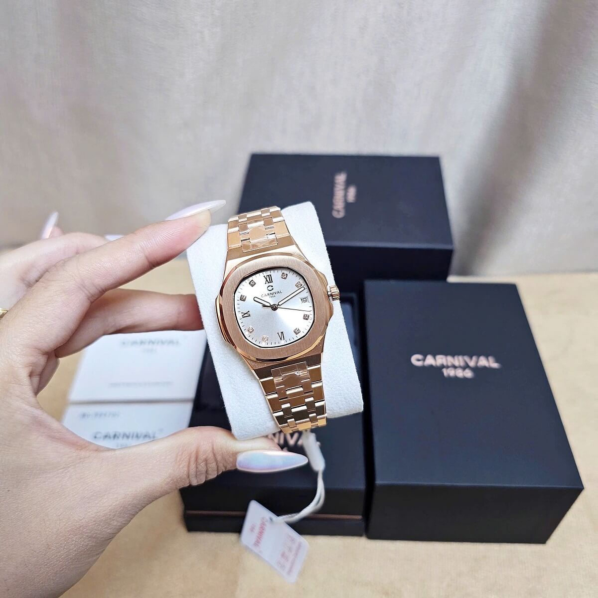 Carnival là một thương hiệu đồng hồ nổi tiếng đến từ Trung Quốc, được biết đến với việc sản xuất những chiếc đồng hồ chất lượng, sang trọng nhưng vẫn có mức giá phải chăng. Với nhiều năm kinh nghiệm trong ngành đồng hồ, Carnival đã xây dựng được một hình ảnh đáng tin cậy và tạo dựng lòng tin với người tiêu dùng. Các sản phẩm của Carnival luôn được đánh giá cao về thiết kế, chất liệu và độ bền, đặc biệt là những mẫu đồng hồ nữ, như chiếc Carnival 8160L này.