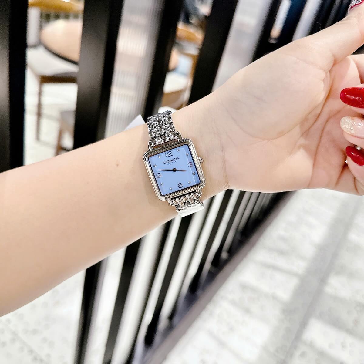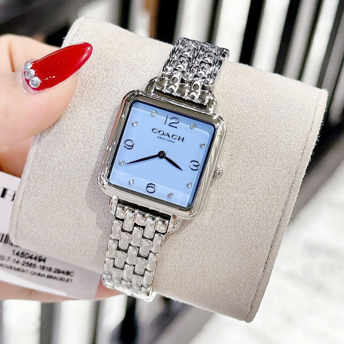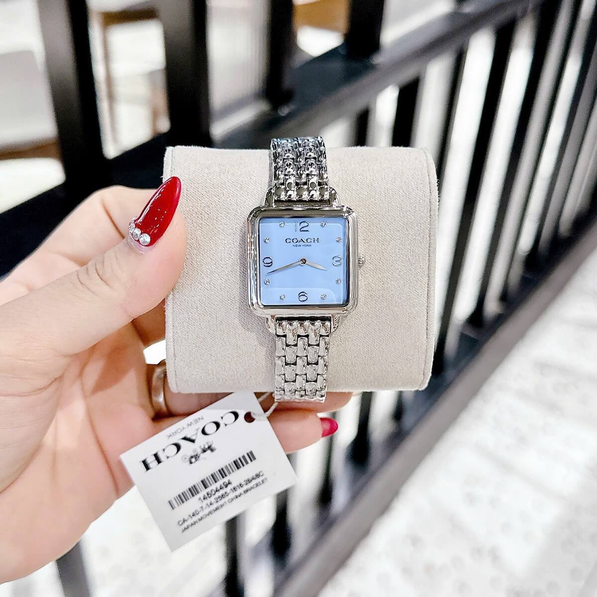 Đồng Hồ Nữ Coach 14504495 Mặt Vuông Xanh Dây Kim Loại Silver Size 28x28mm
