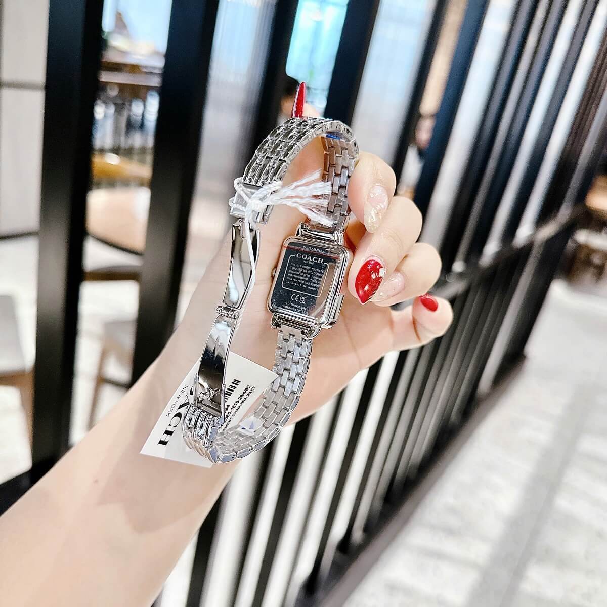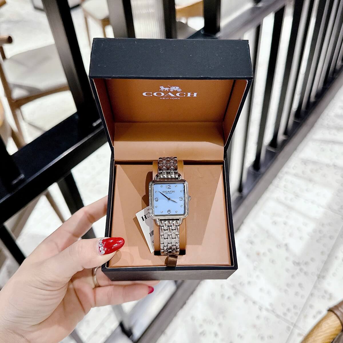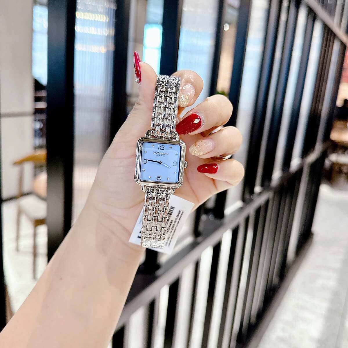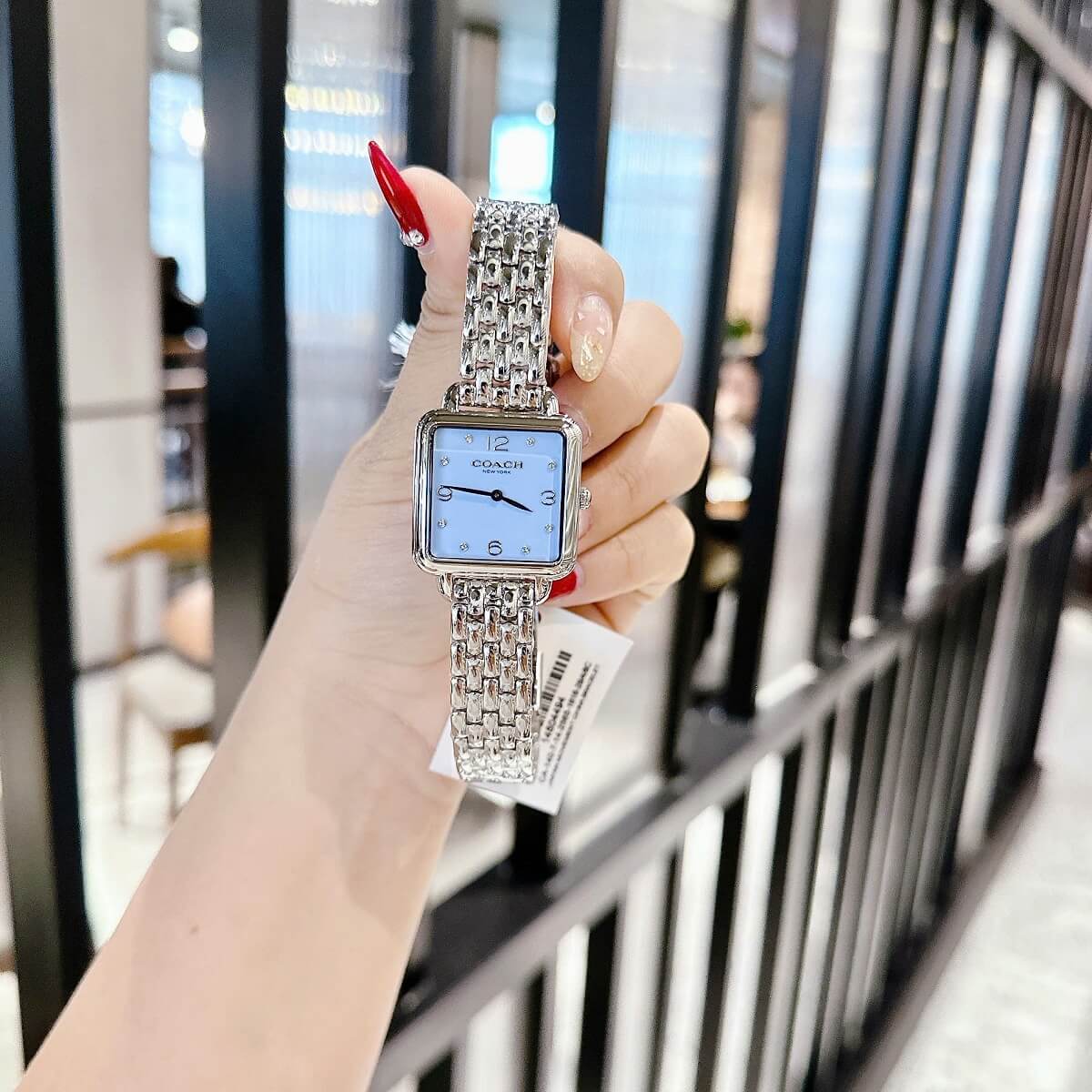 Đồng Hồ Nữ Coach 14504495 Mặt Vuông Xanh Dây Kim Loại Silver Size 28x28mm