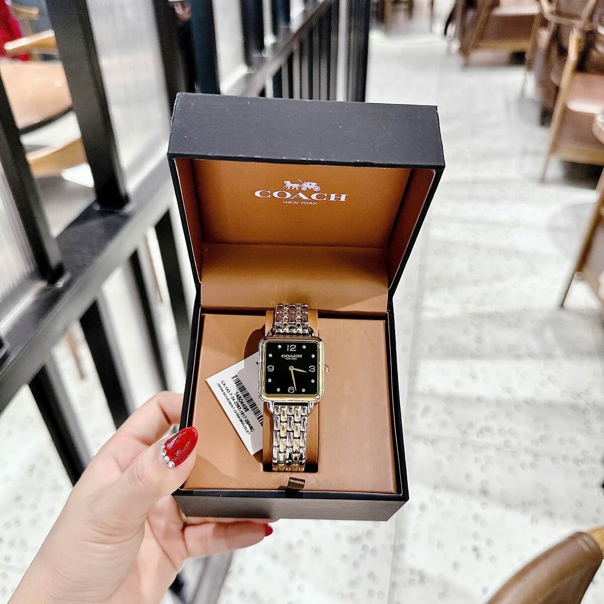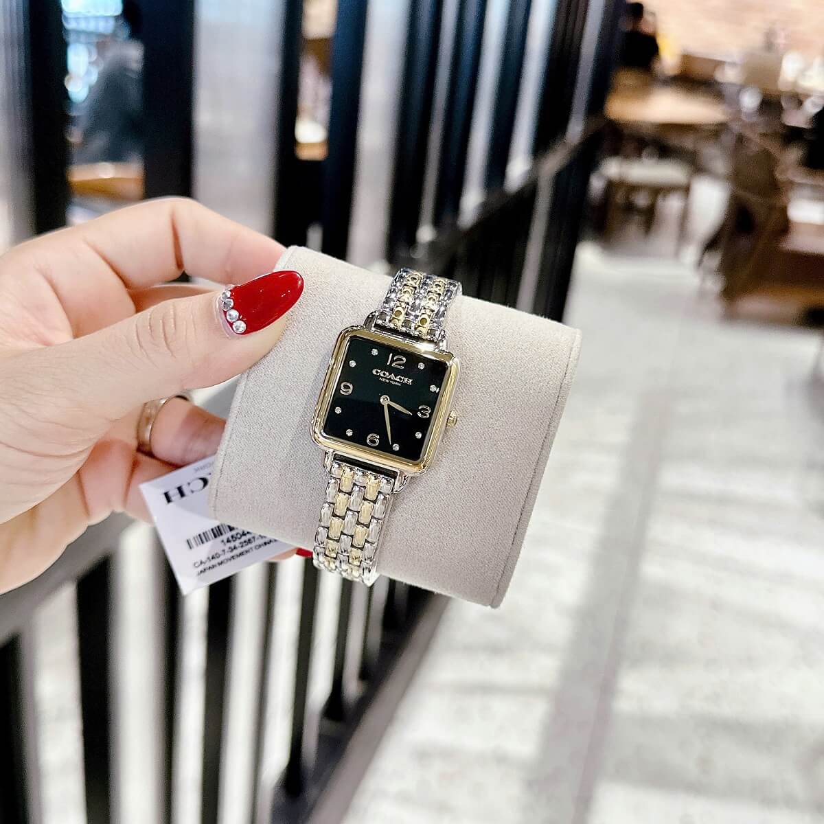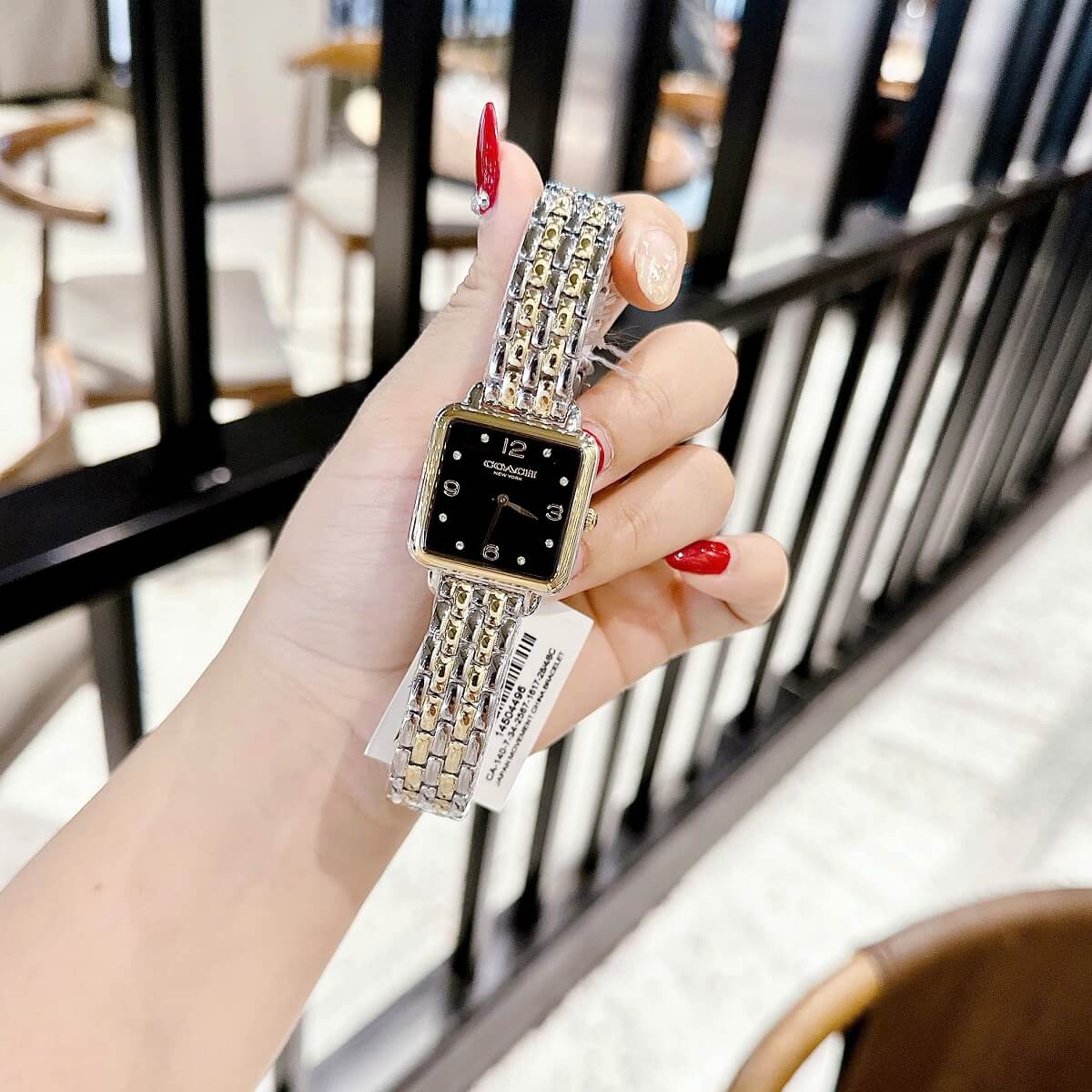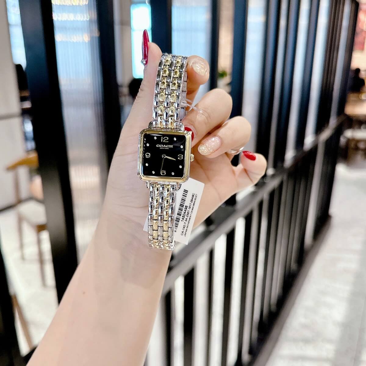 Hình ảnh thực tế Đồng Hồ Nữ Coach 14504496 Mặt Vuông Đen Dây Kim Loại Demi Vàng Size 28x28mm