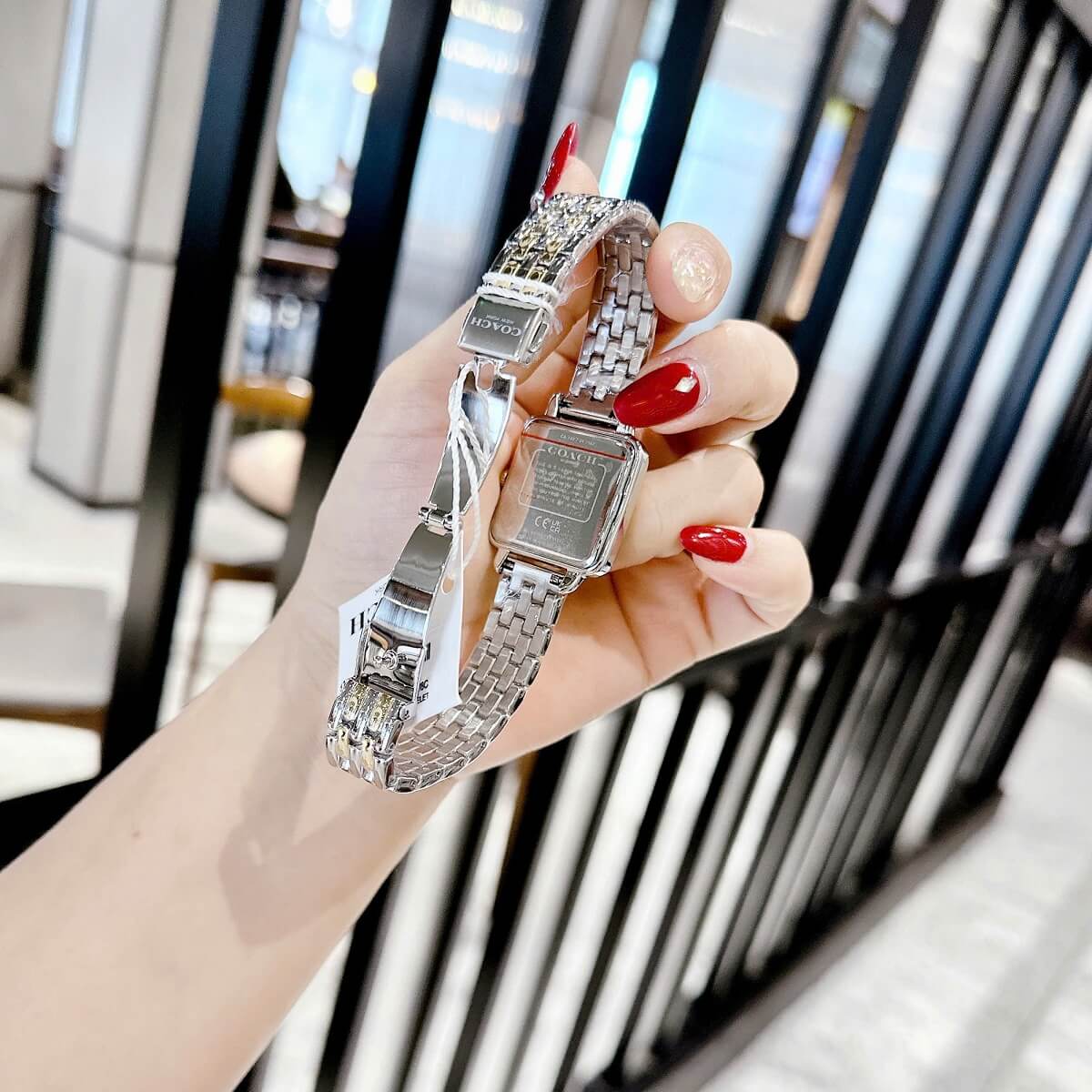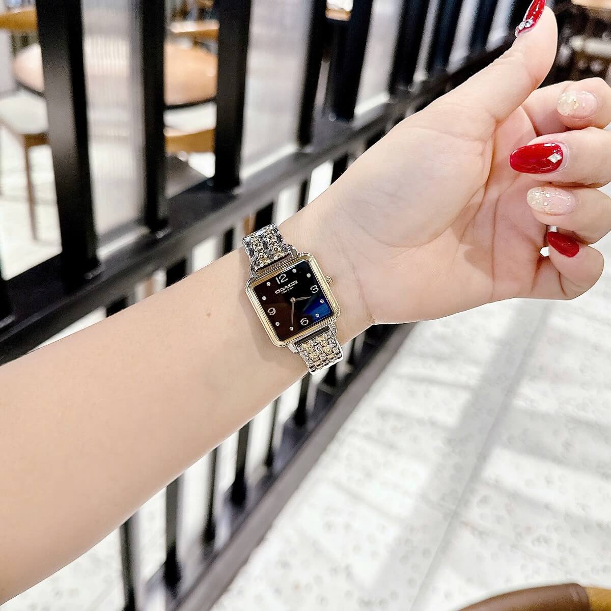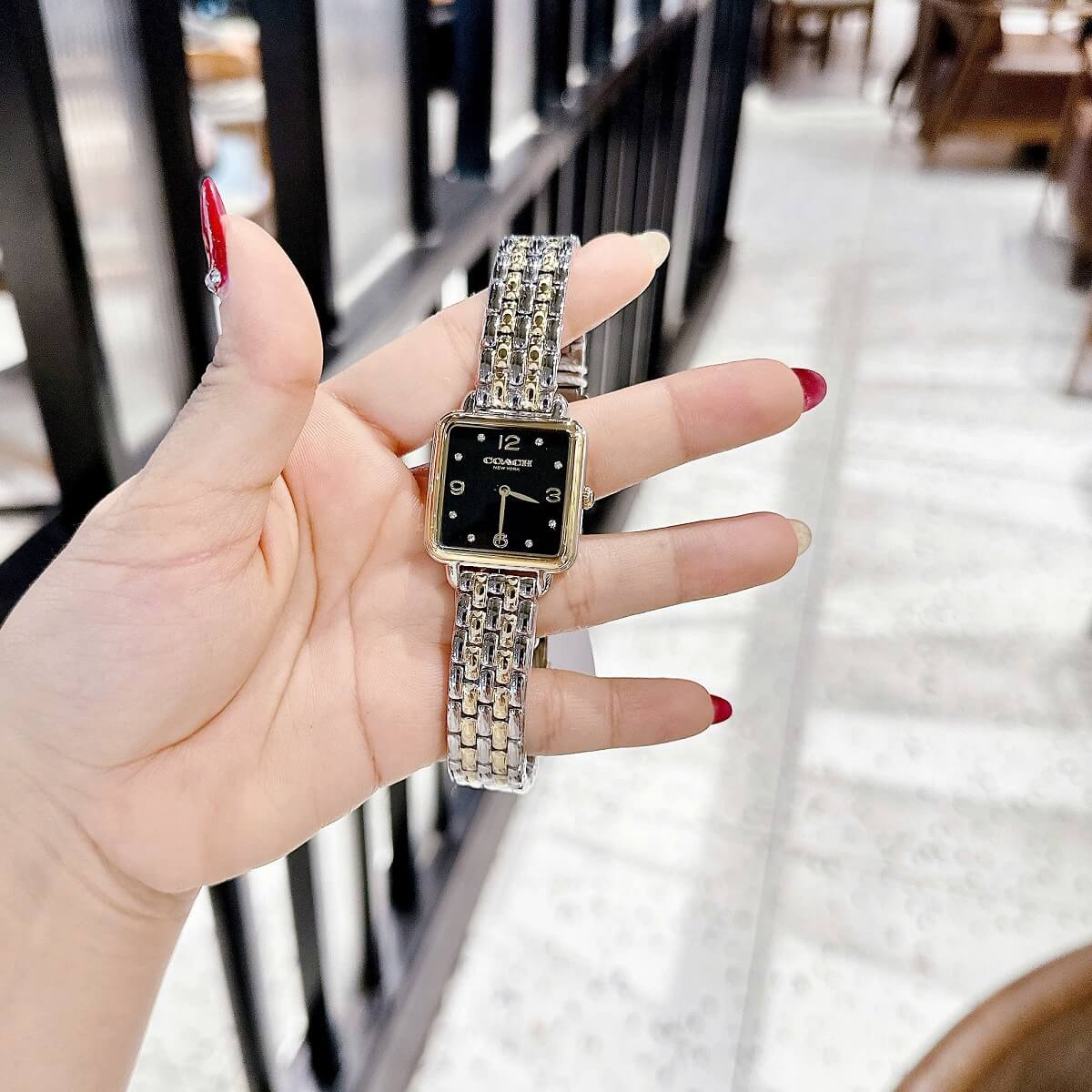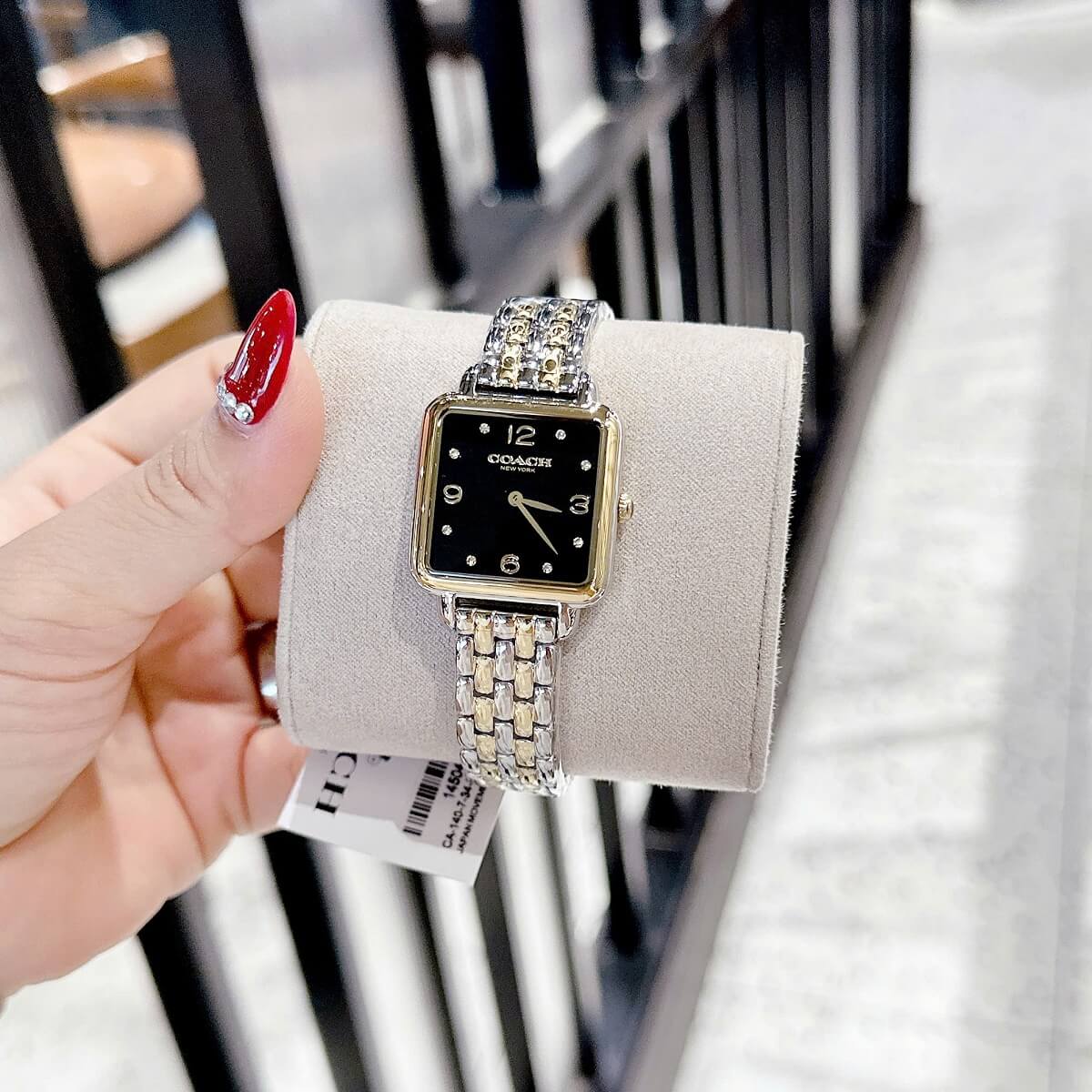 Hình ảnh thực tế Đồng Hồ Nữ Coach 14504496 Mặt Vuông Đen Dây Kim Loại Demi Vàng Size 28x28mm