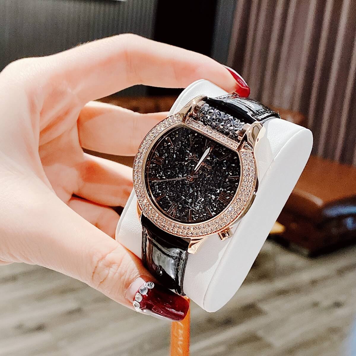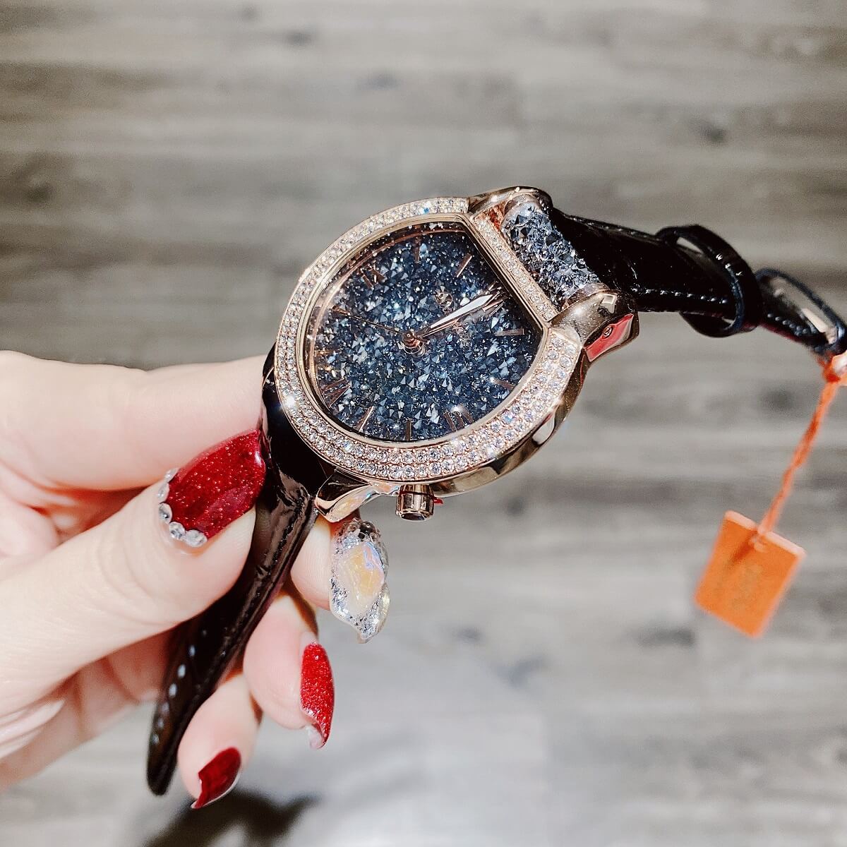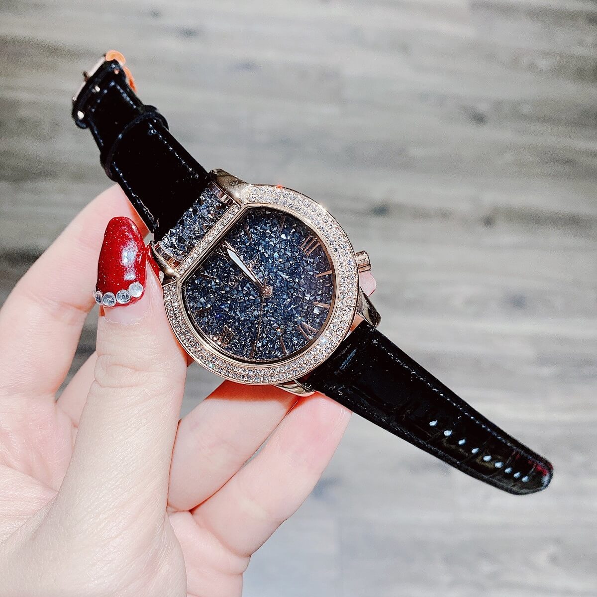 Với thiết kế dây da, mặt viền đính đá swarovski lấp lánh lung linh nổi bật sang trọng cho phái đẹp.