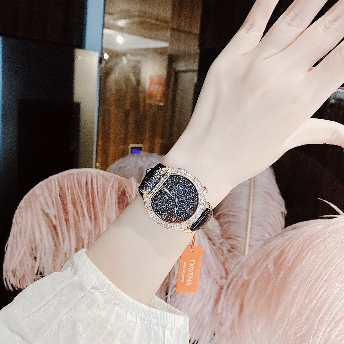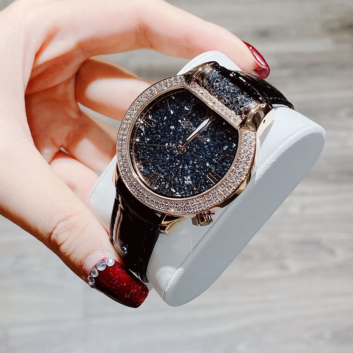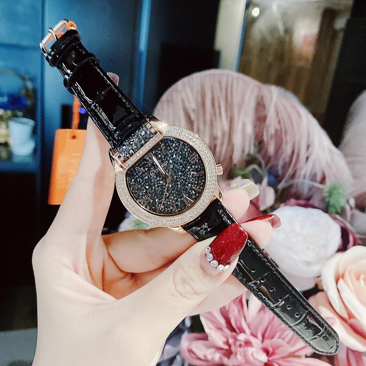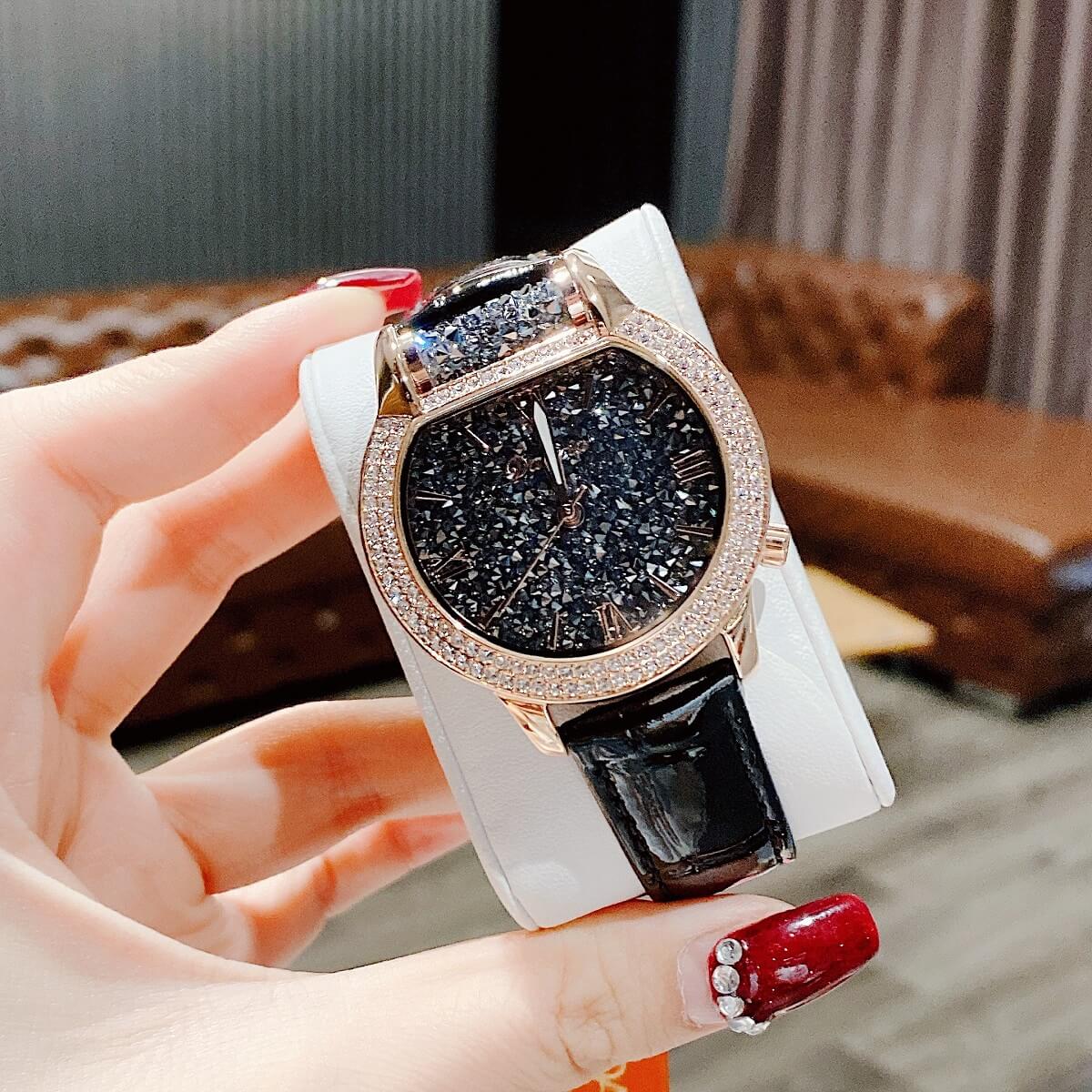 Với thiết kế dây da, mặt viền đính đá swarovski lấp lánh lung linh nổi bật sang trọng cho phái đẹp.