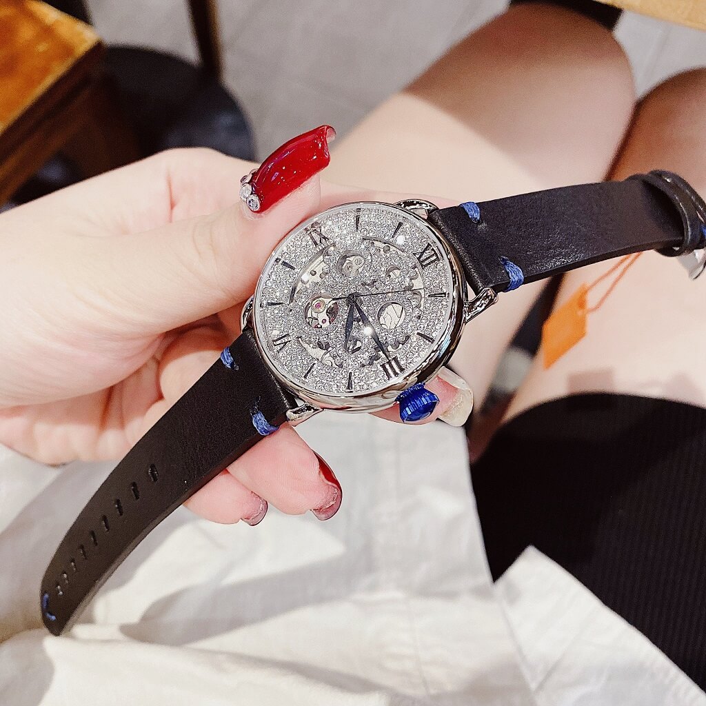 - Đồng Hồ Nữ Davena 31935 Tự Động Dây Da Đen Silver 38mm chính hãng máy Nhật