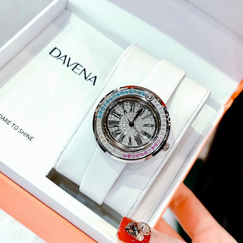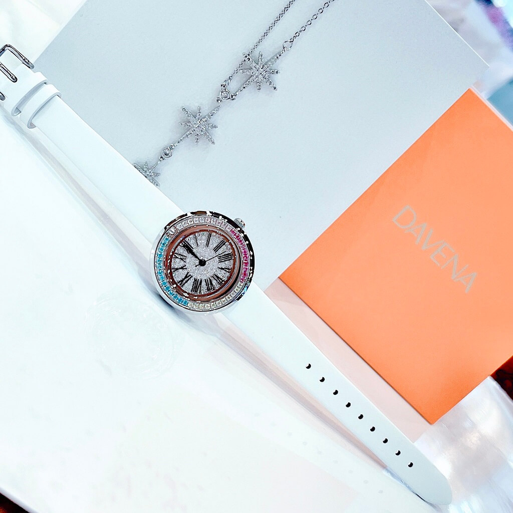 Đồng Hồ Nữ Davena 31996 Dây Da Trắng Silver 30mm chính hãng máy Nhật