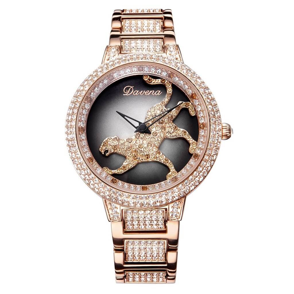 Đồng hồ Davena 60089 mặt báo xoay đồng trục, Davena chính hãng nữ đính đá rose gold, mặt và dây được đính full đá swarovski sang trọng