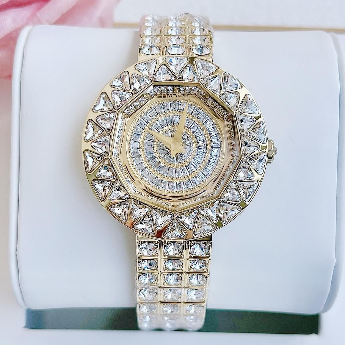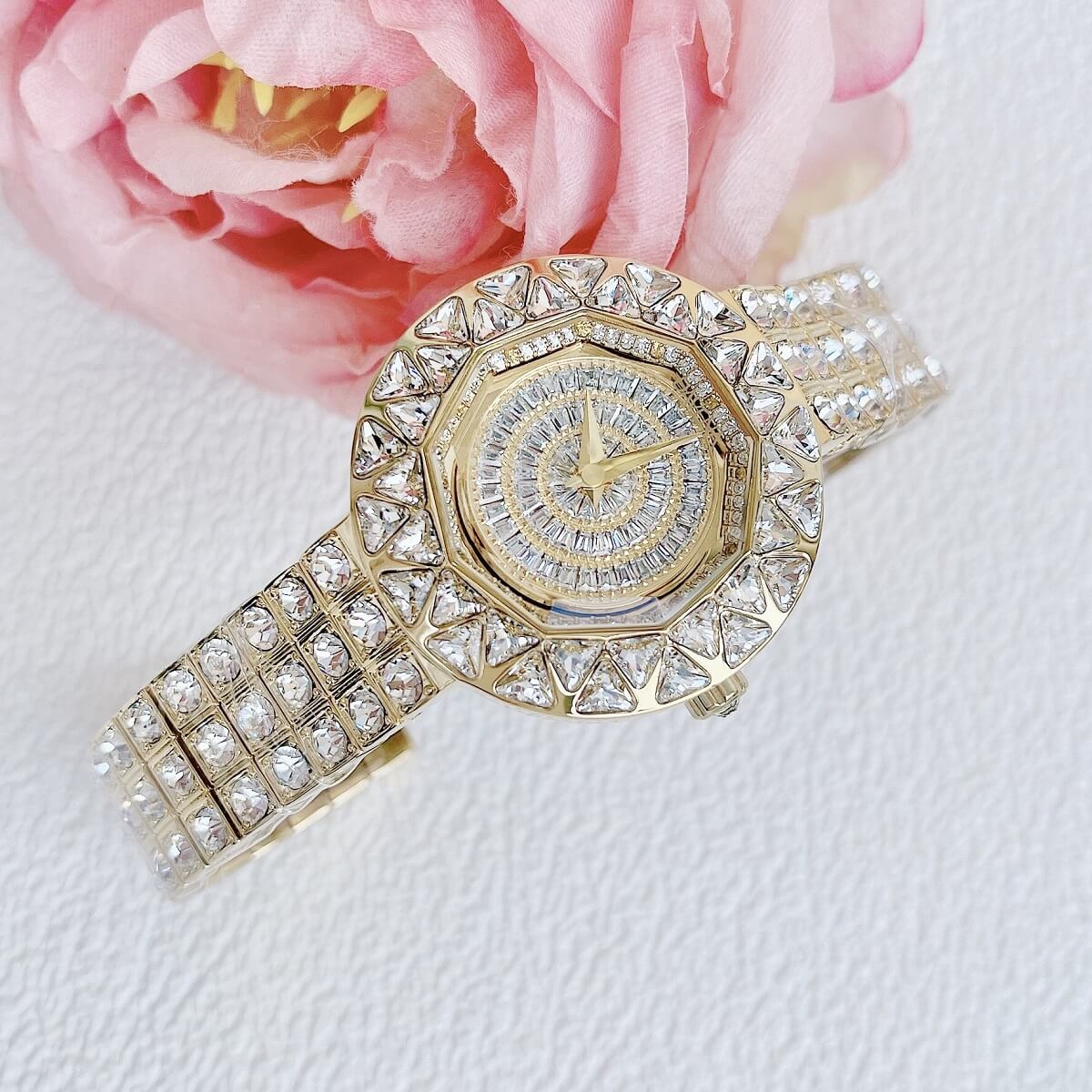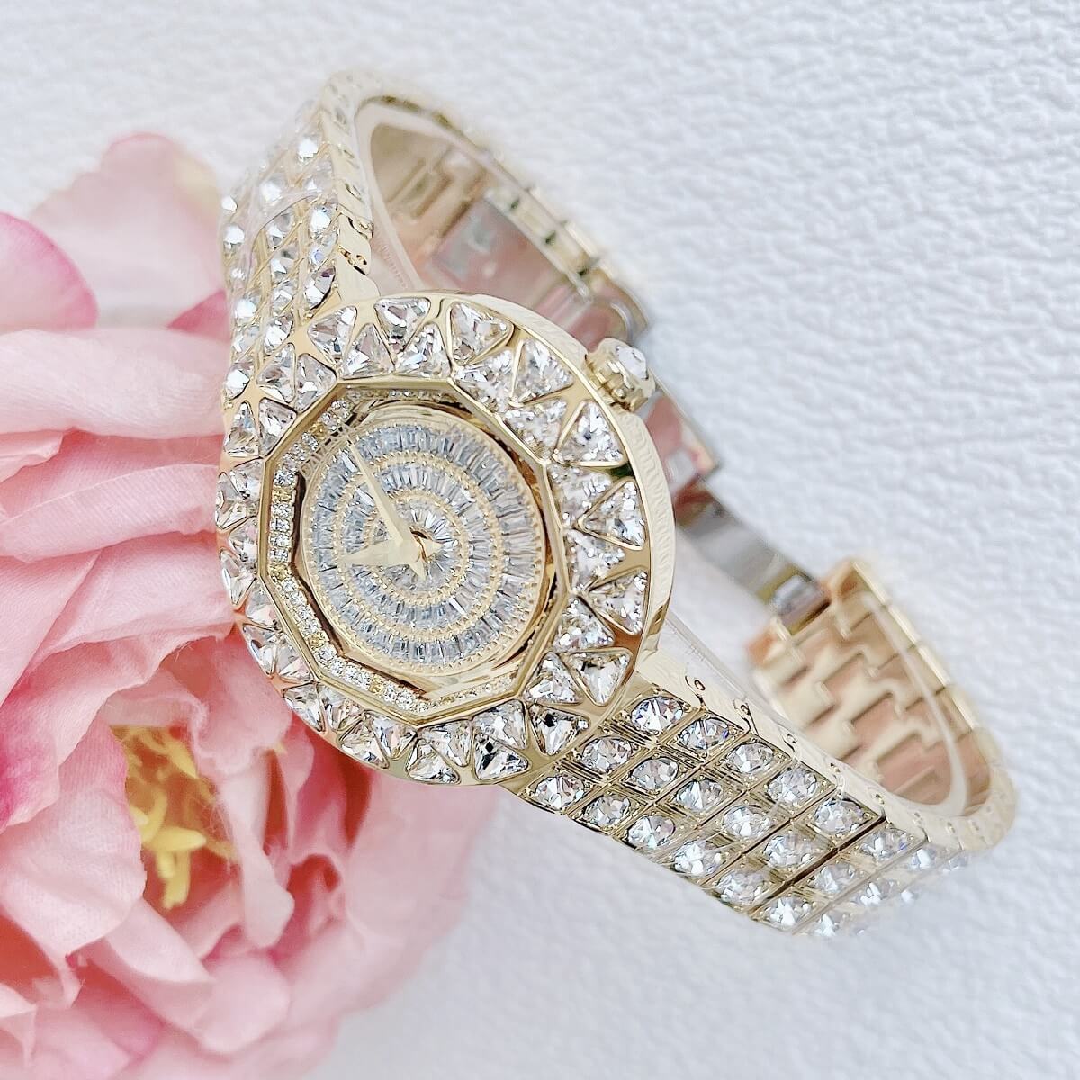 Thiết kế mặt tròn full đá cắt vát cực kỳ sang trọng, lấy chính bản thân người đeo làm tâm điểm. Điểm nhấn máy mặt xoay ở phần trung tâm rất đẹp mắt chỉ cần cử động tay bề mặt chuyển động đẹp mắt