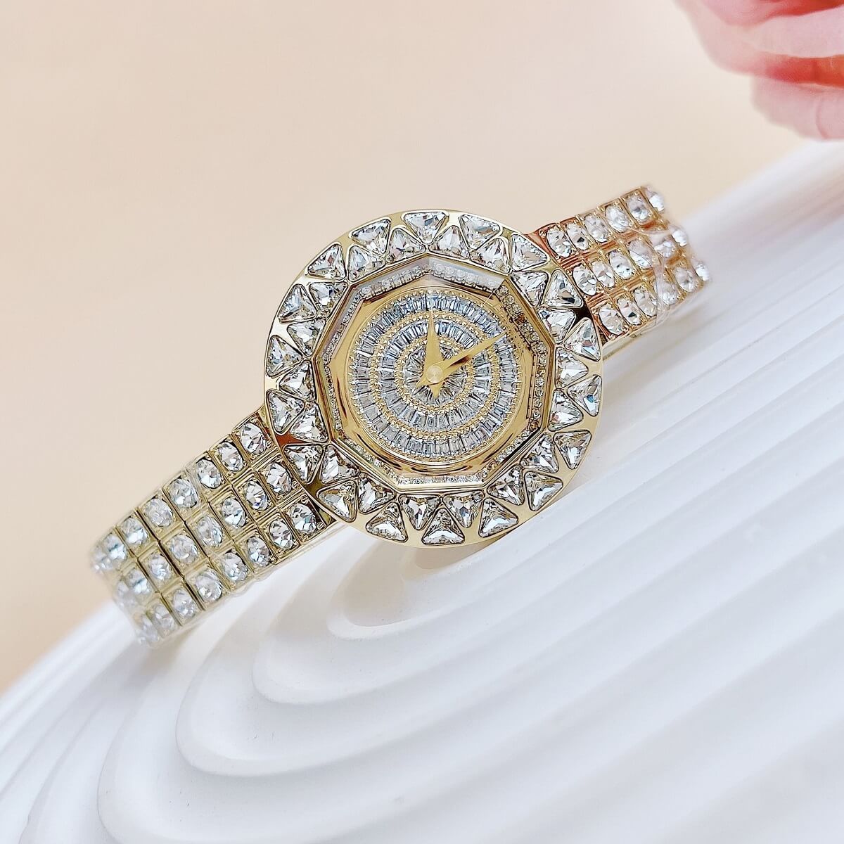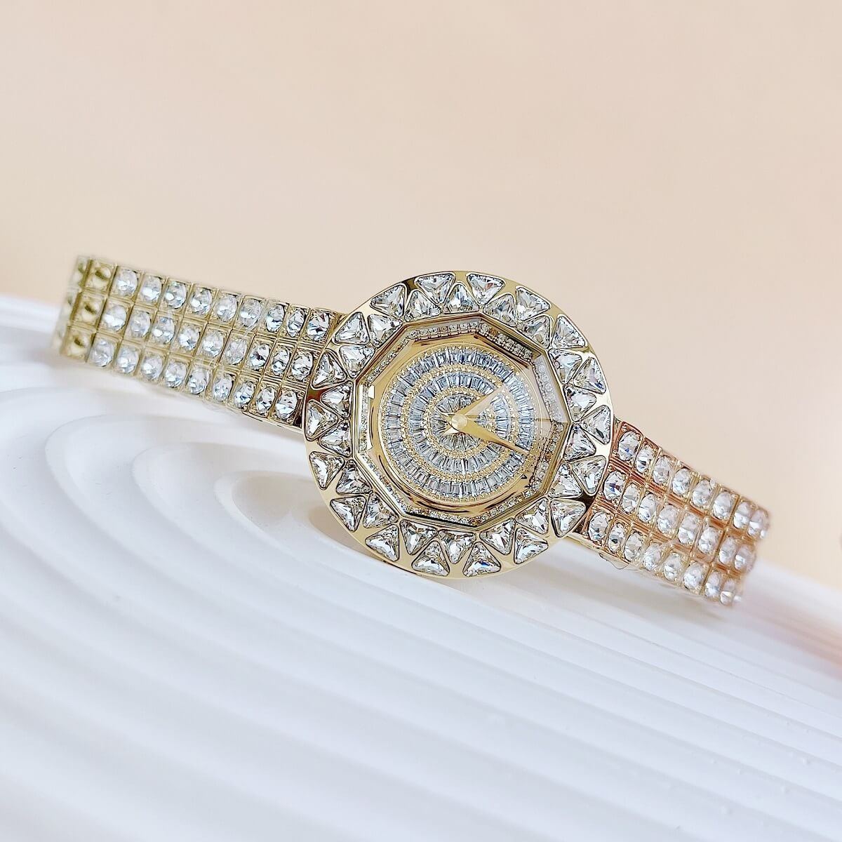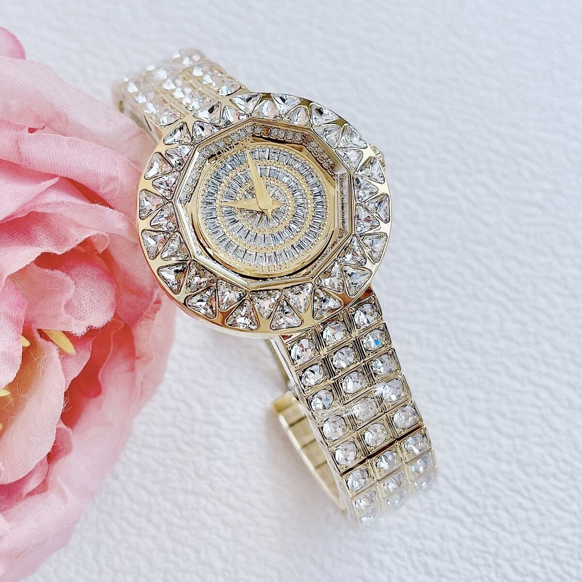 Thiết kế mặt tròn full đá cắt vát cực kỳ sang trọng, lấy chính bản thân người đeo làm tâm điểm. Điểm nhấn máy mặt xoay ở phần trung tâm rất đẹp mắt chỉ cần cử động tay bề mặt chuyển động đẹp mắt