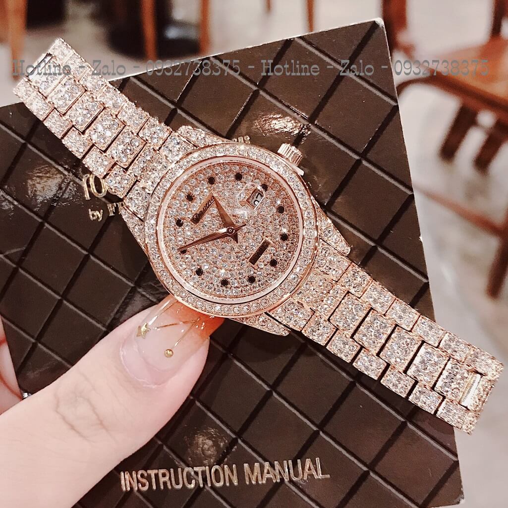 Hình ảnh đồng hồ Davena nữ chính hãng, đồng hồ đính đá màu rose sang trọng dành cho nữ