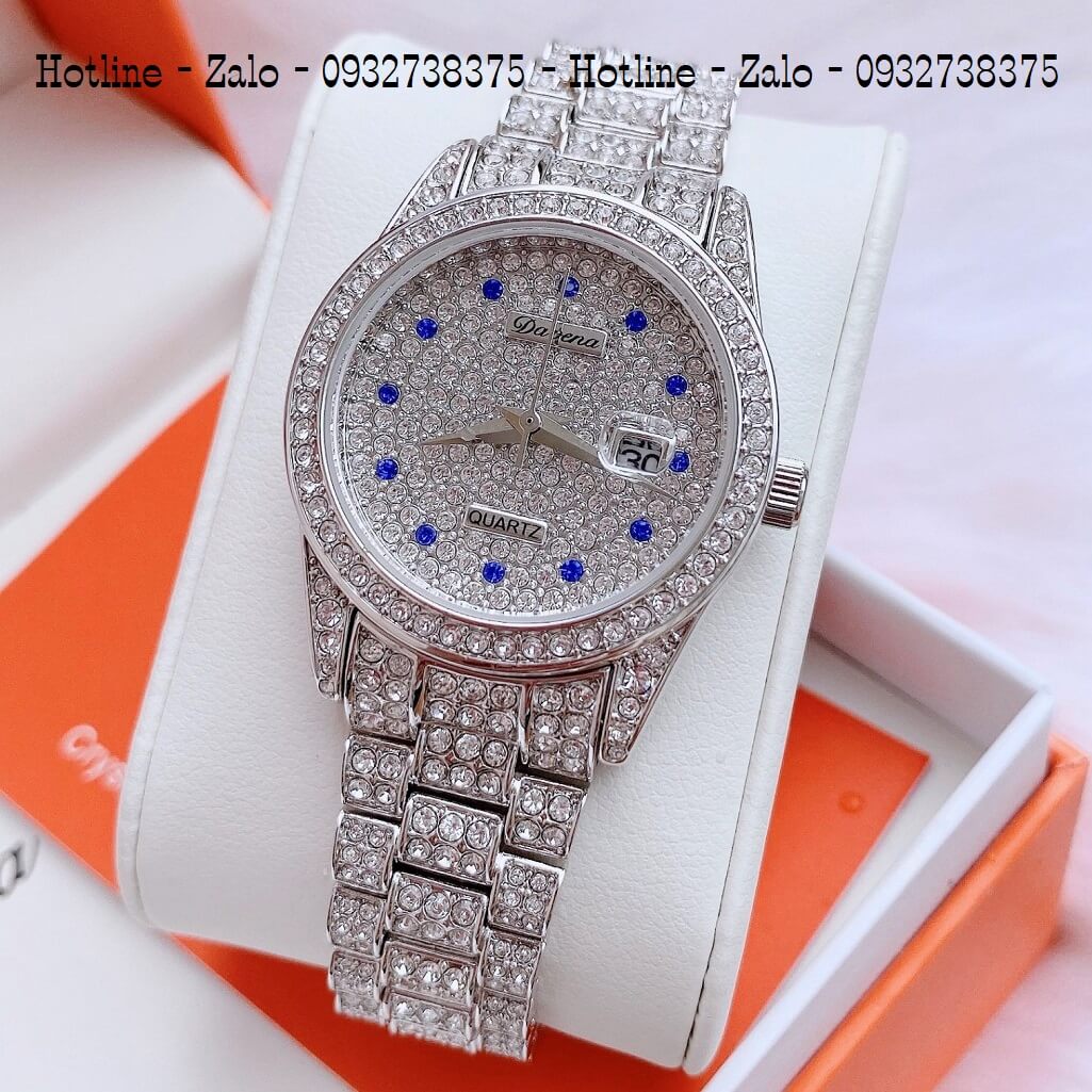 Hình ảnh đồng hồ Davena nữ chính hãng, đồng hồ đính đá màu bạc sang trọng dành cho nữ