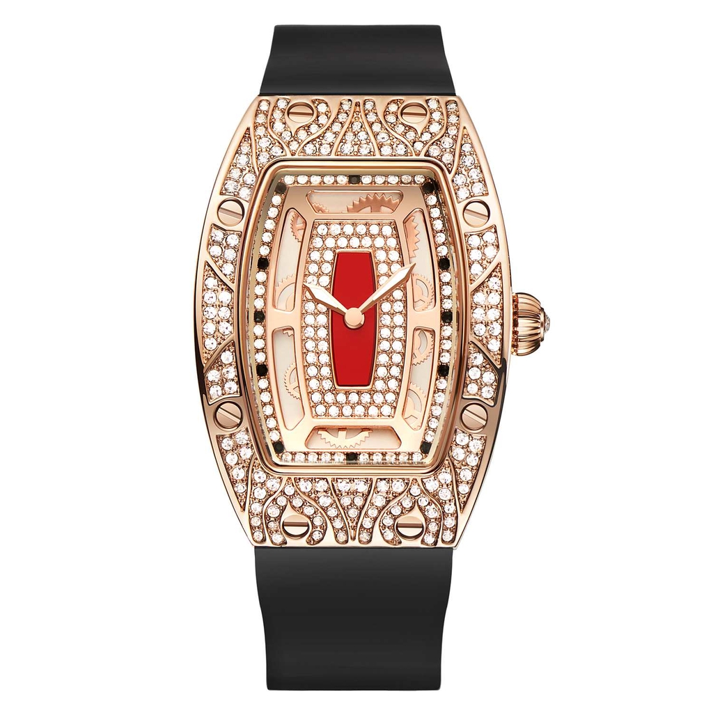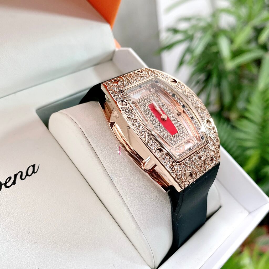 Đồng Hồ Nữ Davena 31995 Silicon Đen Mặt Hoa Văn Rose Gold 36mm