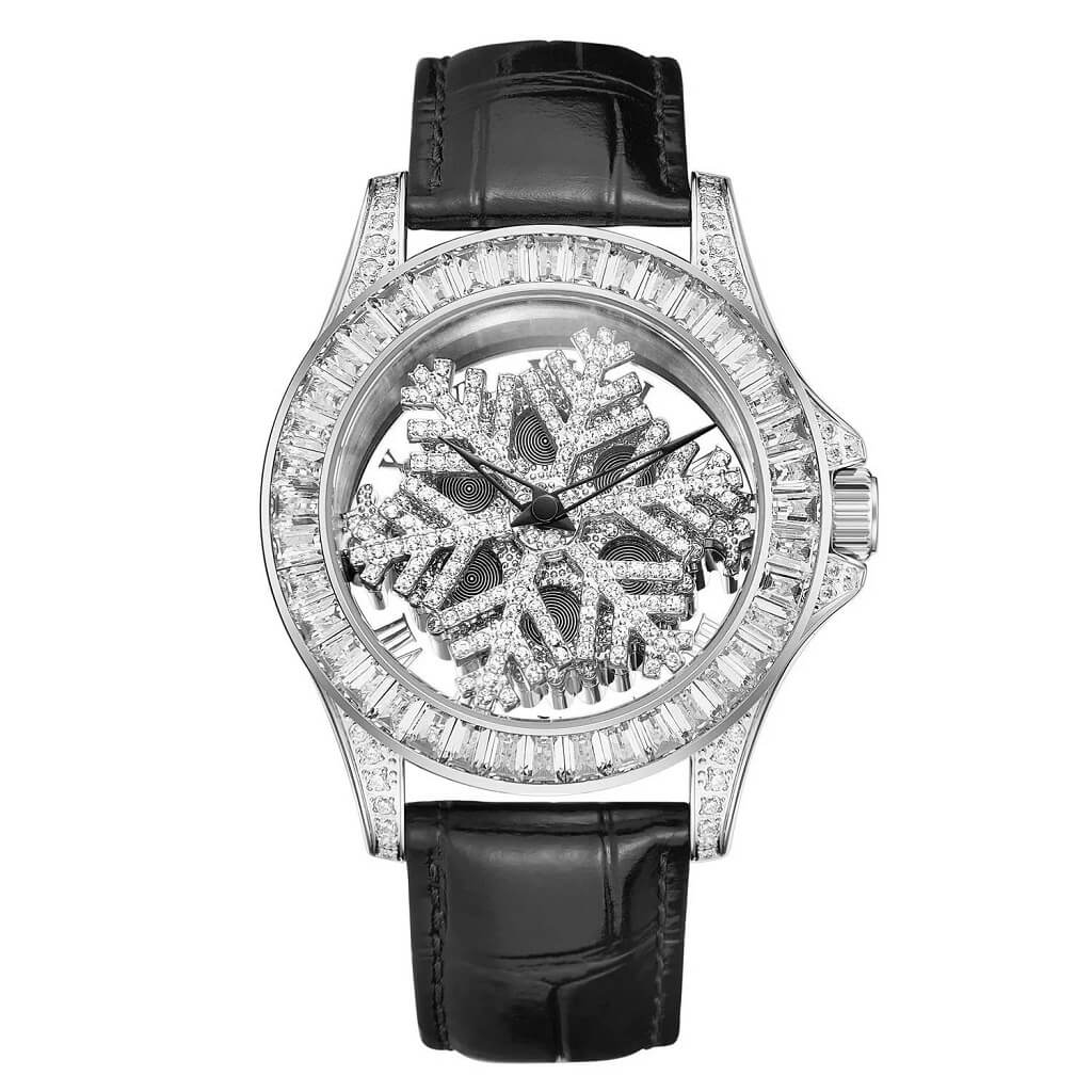 Mặt đính đá và viền đá khối lấp lánh với vỏ silver cực sáng tuyệt đẹp. Dây da mềm mại ôm tay