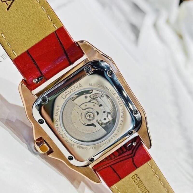 - Đồng Hồ Nữ Davena Tự Động 31638 Dây Da Đỏ Rose Gold 33mm chính hãng