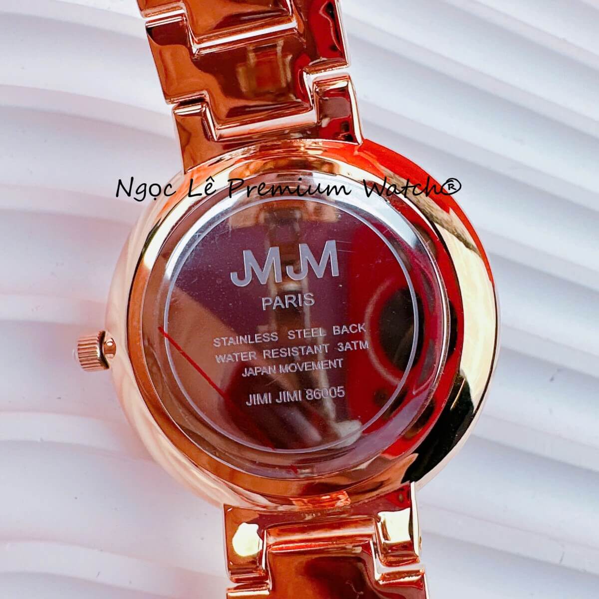 Đồng hồ Jimi Jimi nữ đính đá vàng hồng (rose gold), vẻ đẹp nổi bật với thiết kế đá lấp lánh từ mặt số đến viền ngoài, bên trong mặt đá rơi lạ mắt, phối cùng tone bạc thời trang, JM86005 là điểm nhấn cuốn hút cho cổ tay phái đẹp.