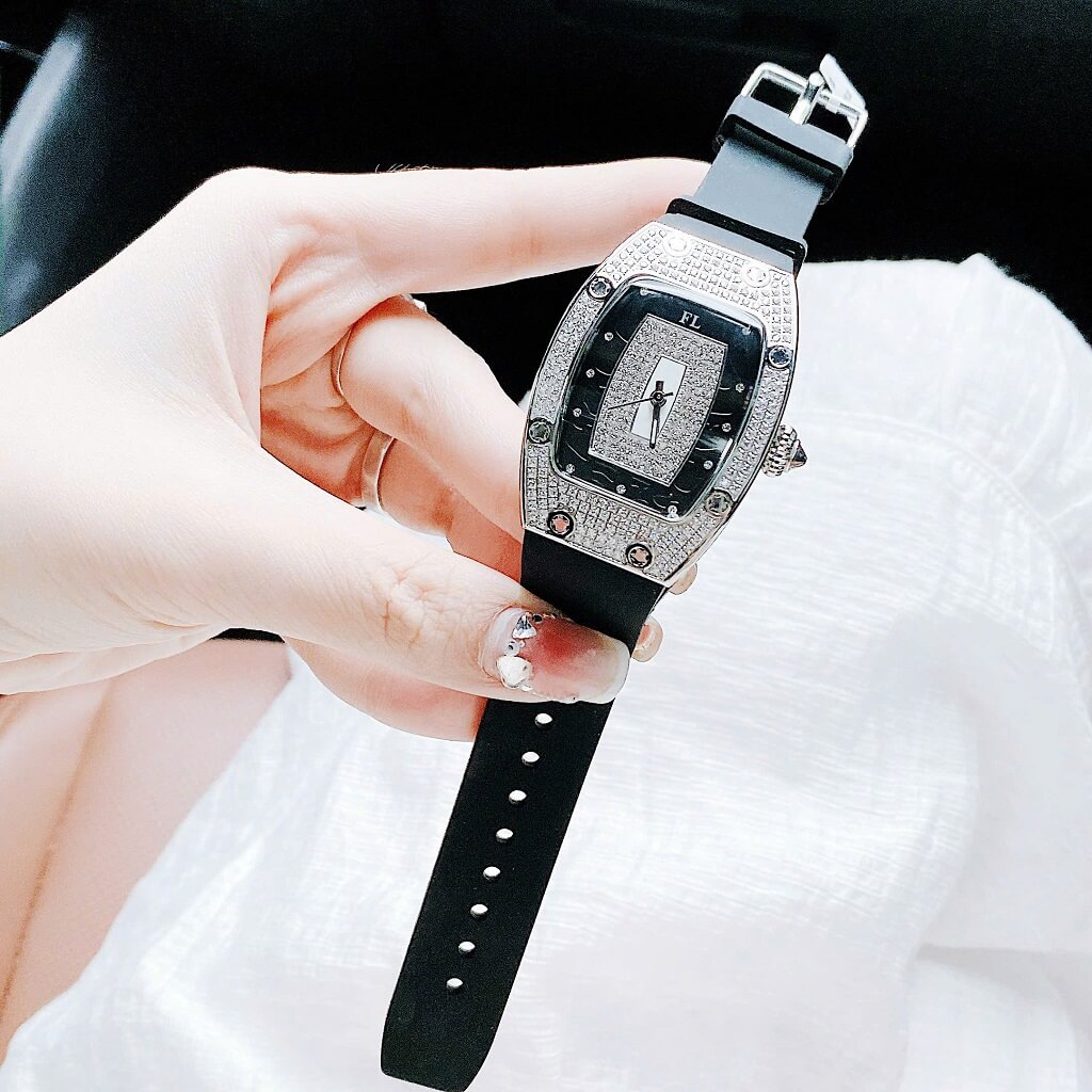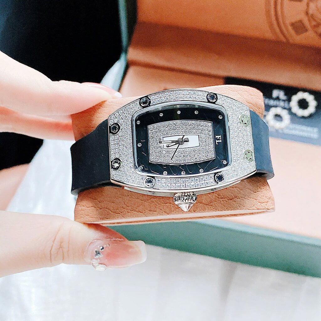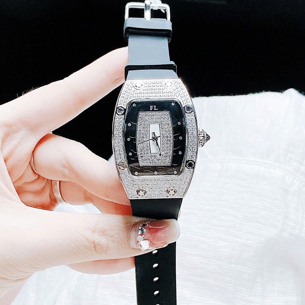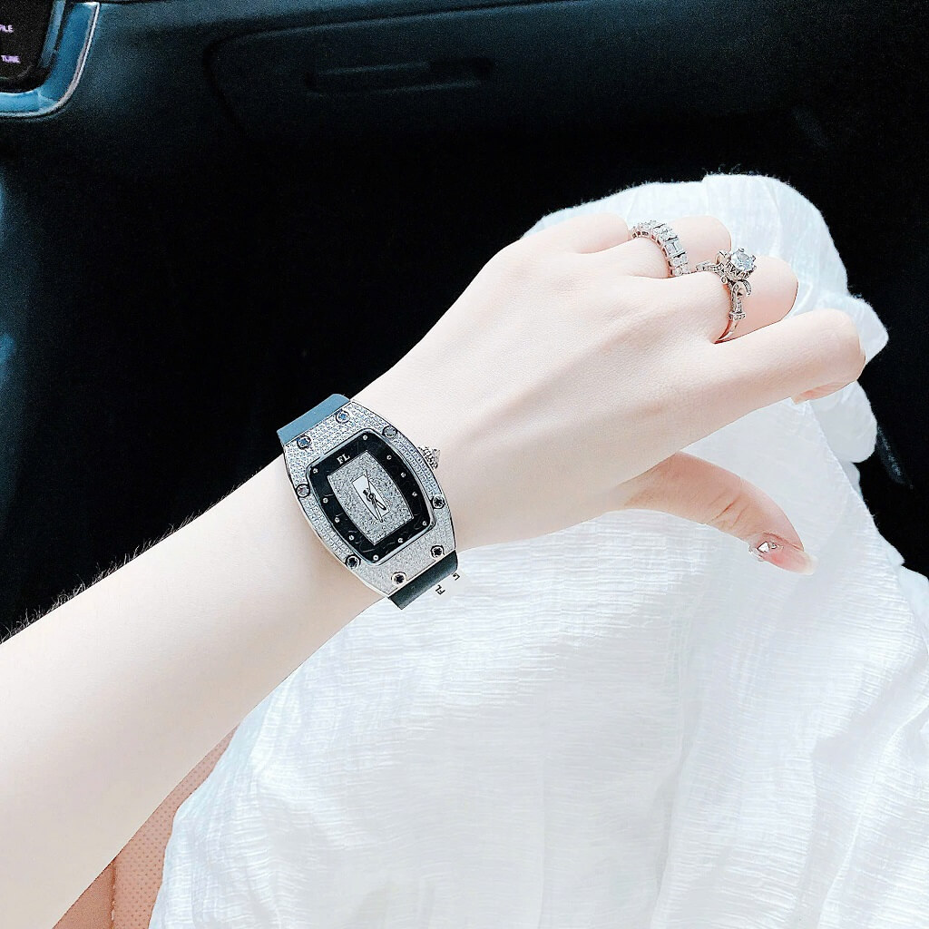 Thông số chi tiết sản phẩm: Đồng Hồ Nữ Franklin Dây Cao Su Đen Vỏ Màu Silver Đính Đá Size 36mm Chính Hãng