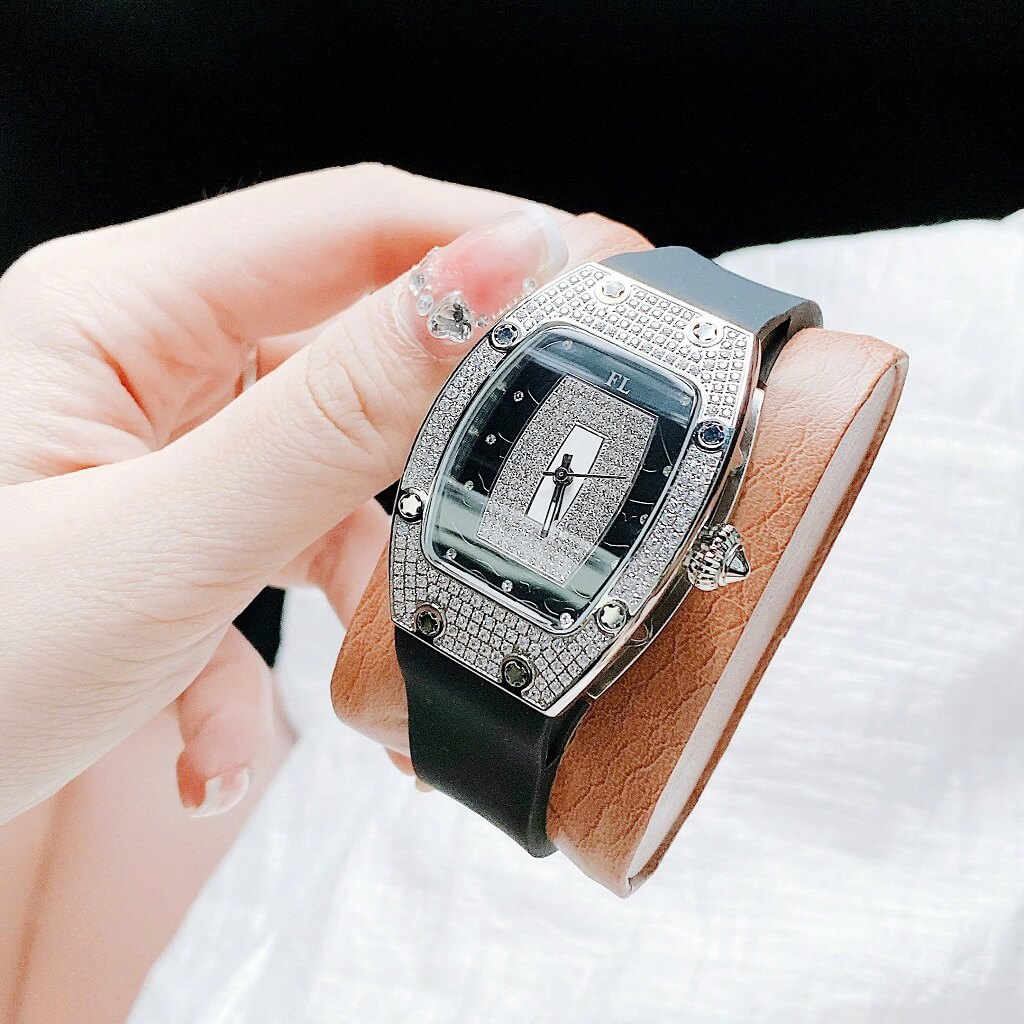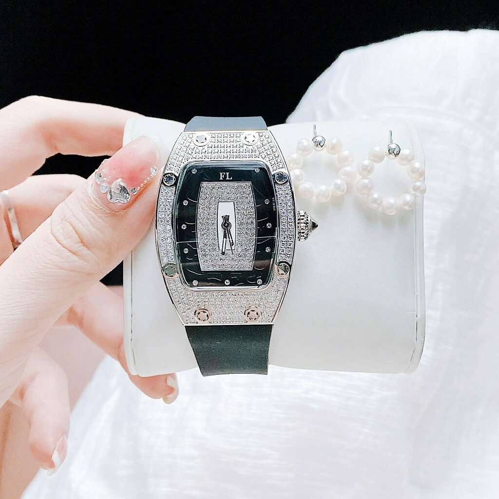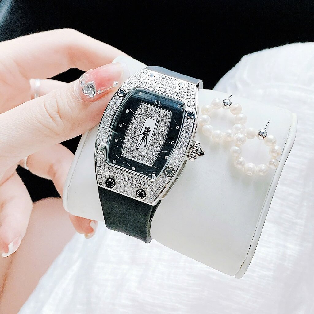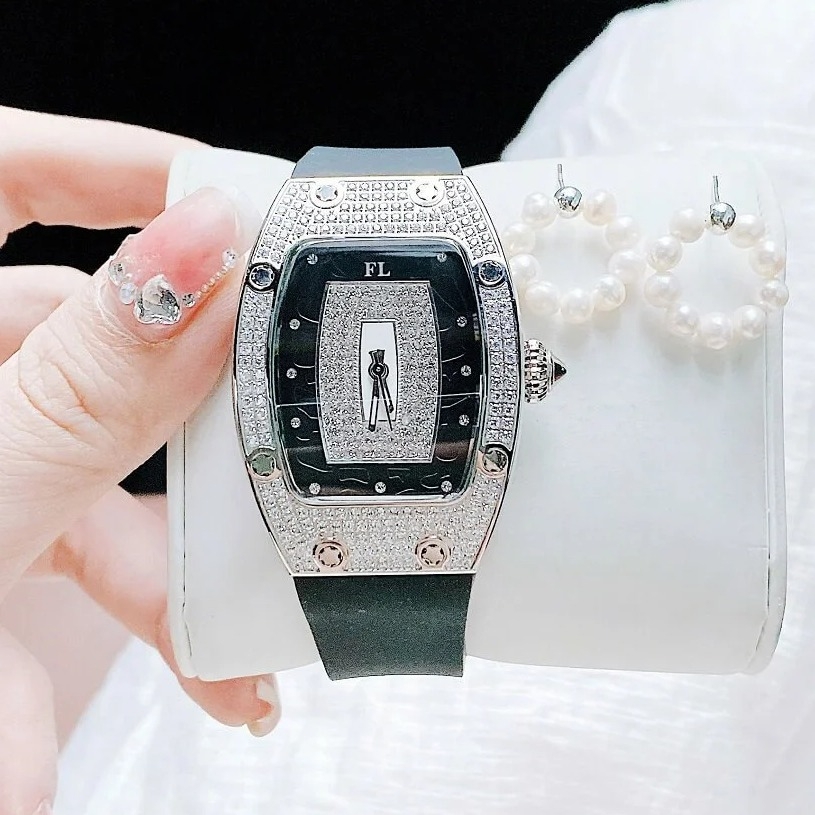 Thông số chi tiết sản phẩm: Đồng Hồ Nữ Franklin Dây Cao Su Đen Vỏ Màu Silver Đính Đá Size 36mm Chính Hãng