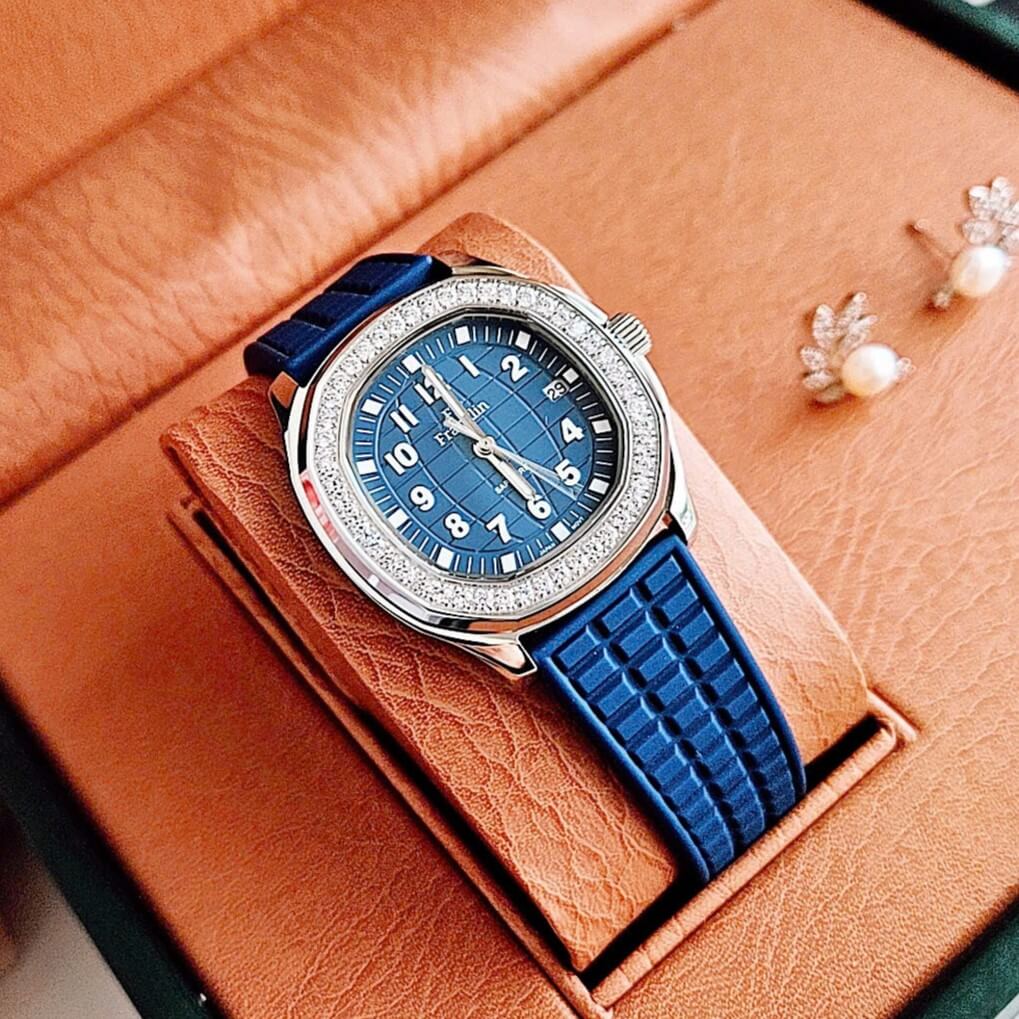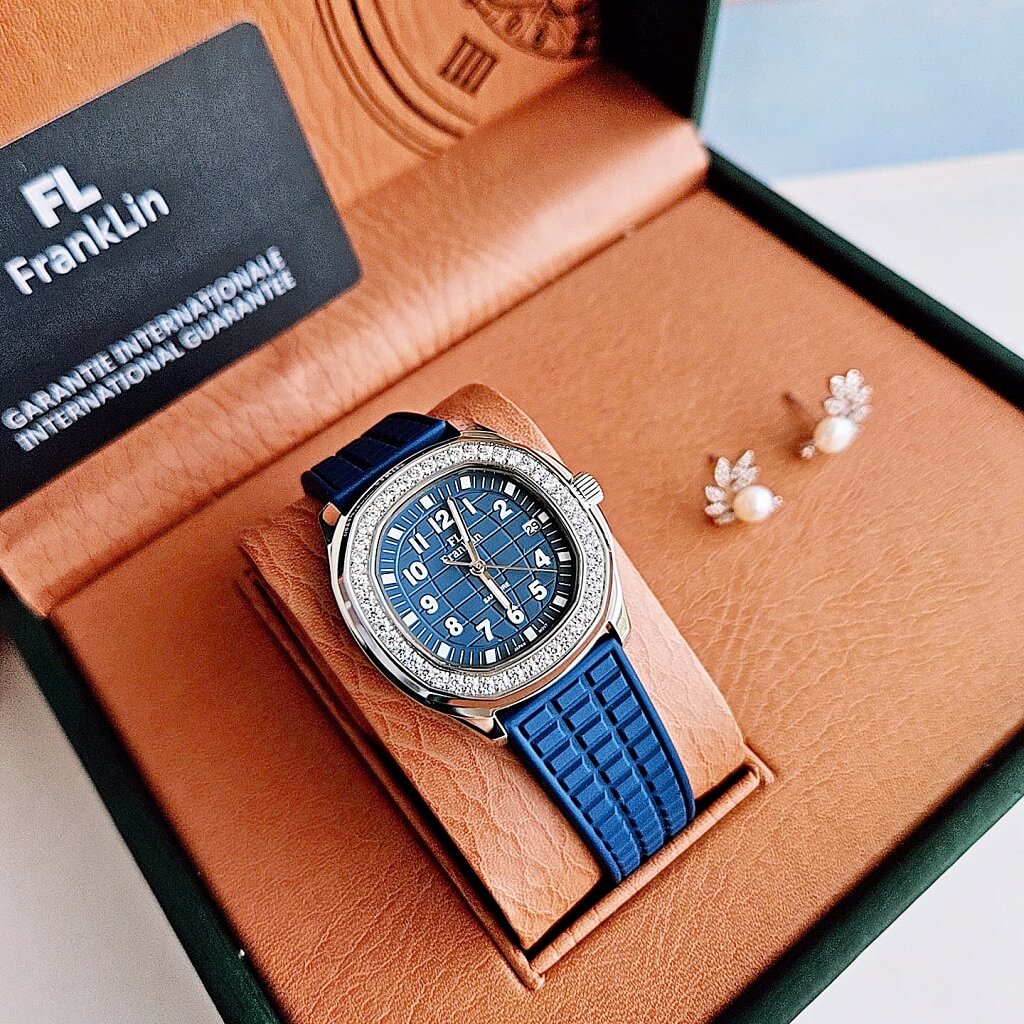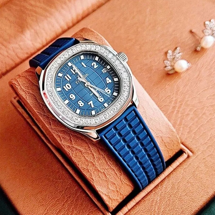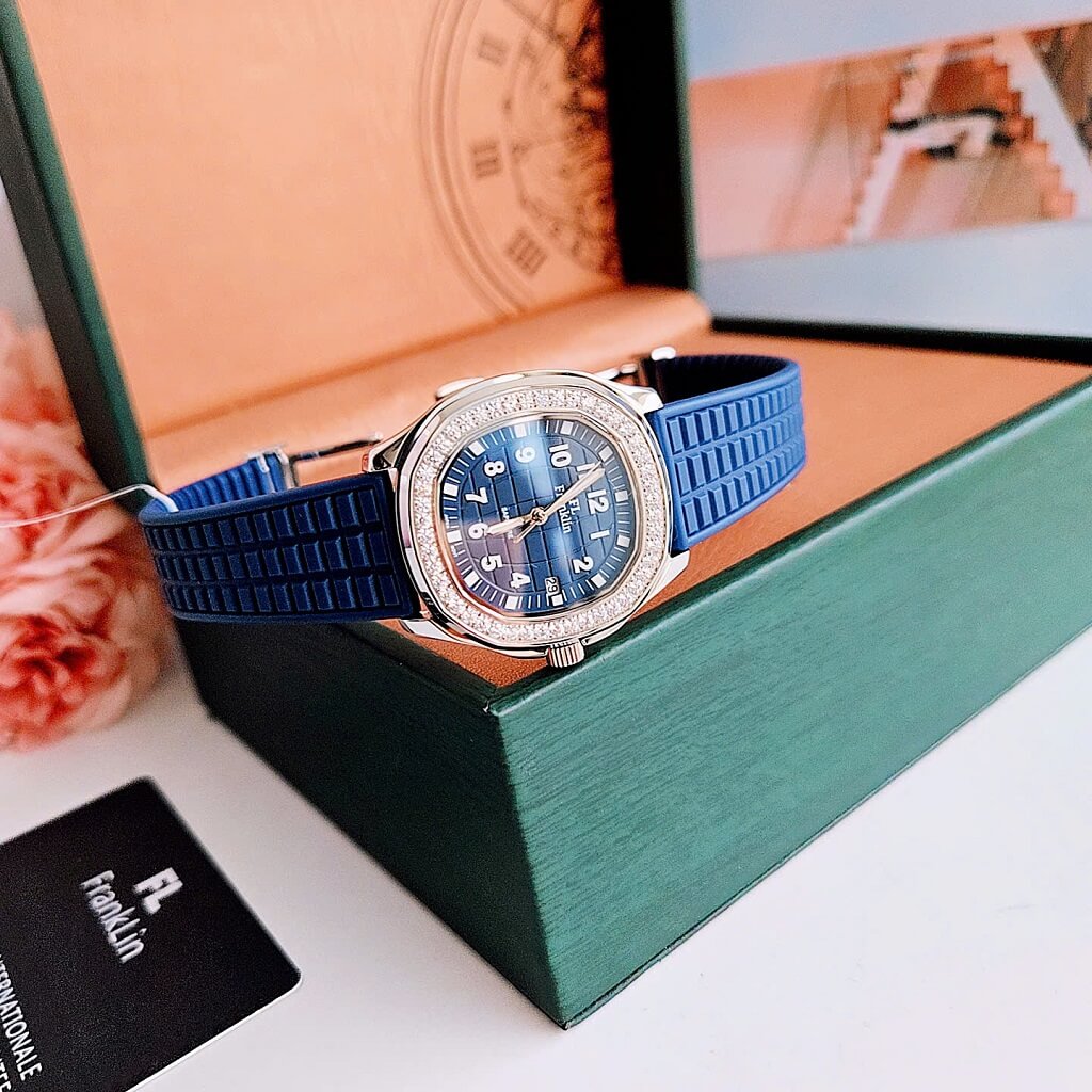Đồng Hồ Nữ Franklin Dây Cao Su Xanh Vỏ Màu Silver Đính Đá Size 35mm Chính Hãng là một mẫu đồng hồ nữ rất thanh lịch và thời trang, kết hợp giữa phong cách thể thao và sang trọng. Dưới đây là một số đặc điểm nổi bật của mẫu đồng hồ này: