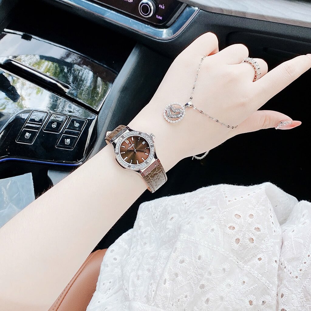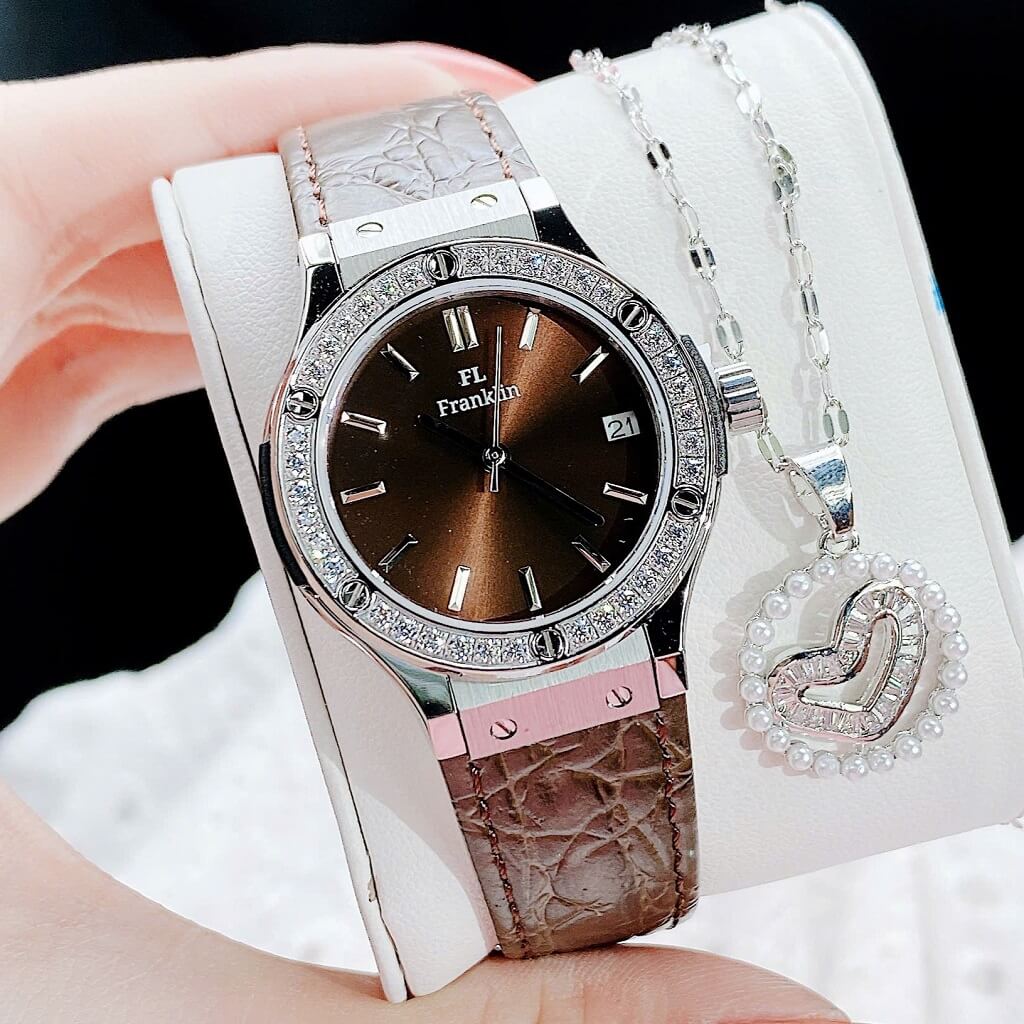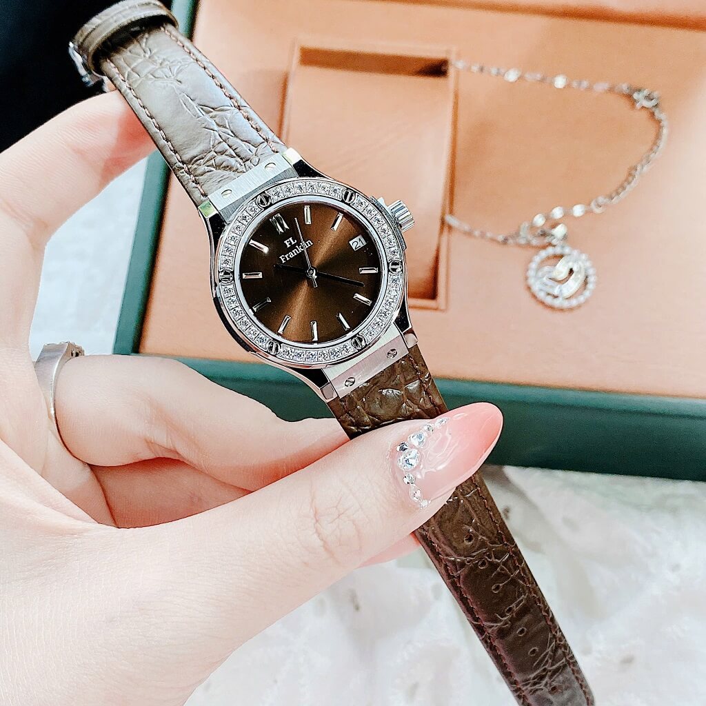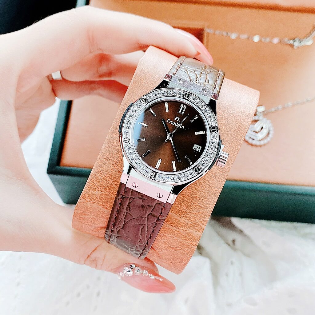 Đồng Hồ Nữ Franklin Dây Da Nâu Đính Đá Vỏ Silver Size 31mm – Thanh lịch, cổ điển và cuốn hút