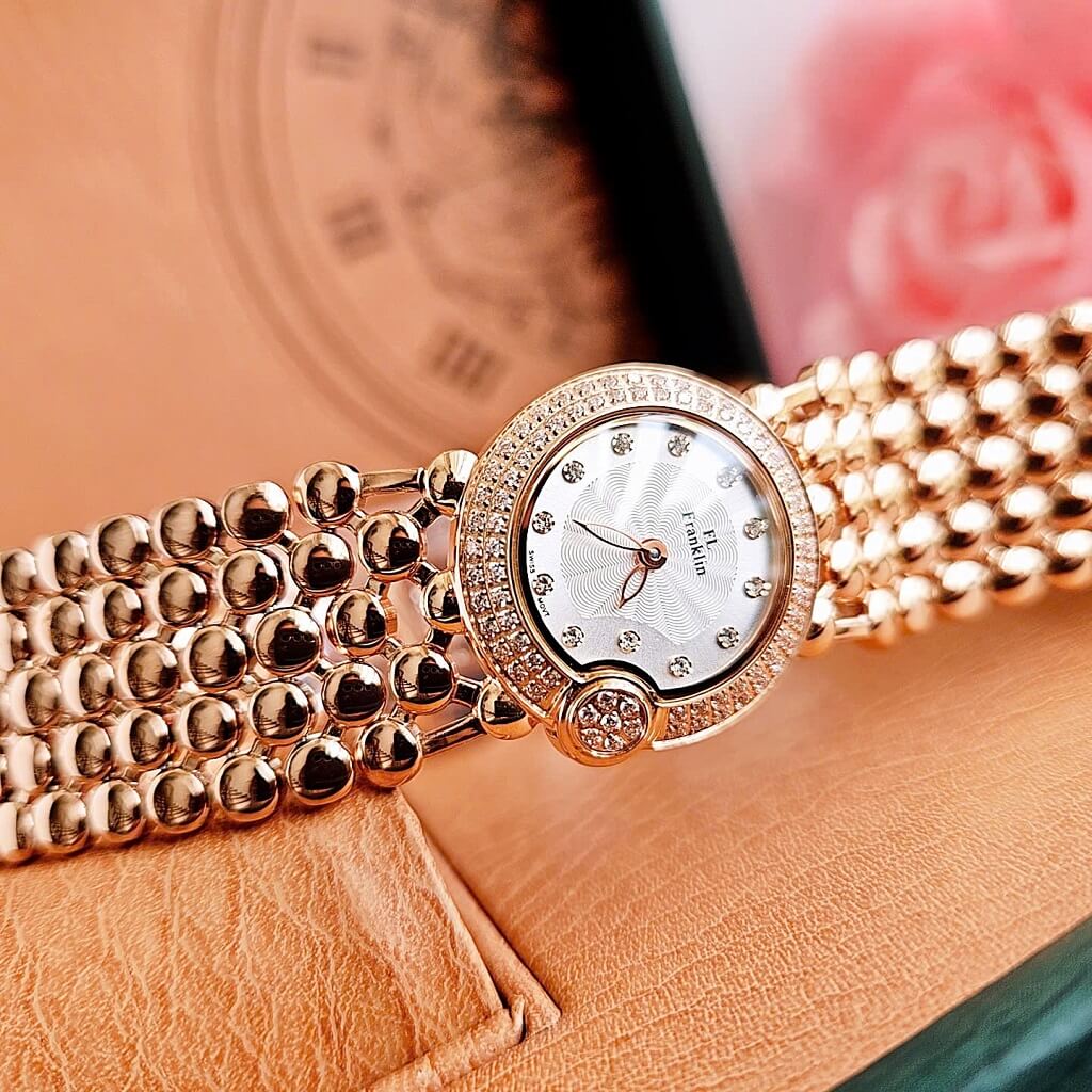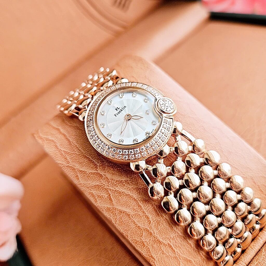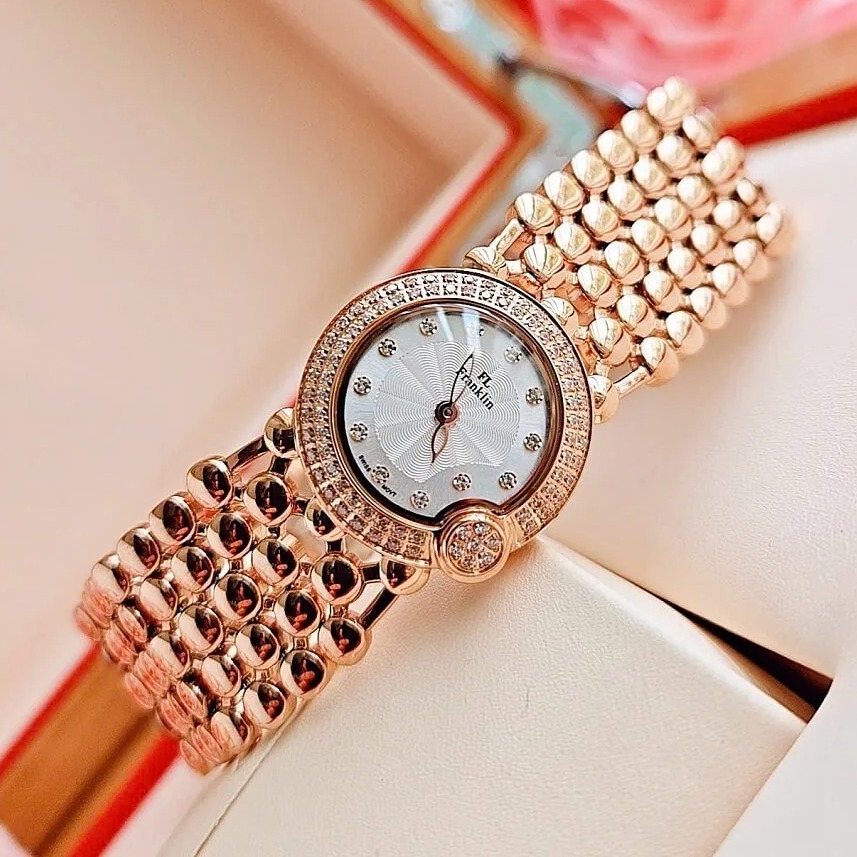 Thông số chi tiết sản phẩm: Đồng Hồ Nữ Franklin Dây Mắc Lưới Vỏ Màu Rose Đính Đá Size 26mm Chính Hãng
