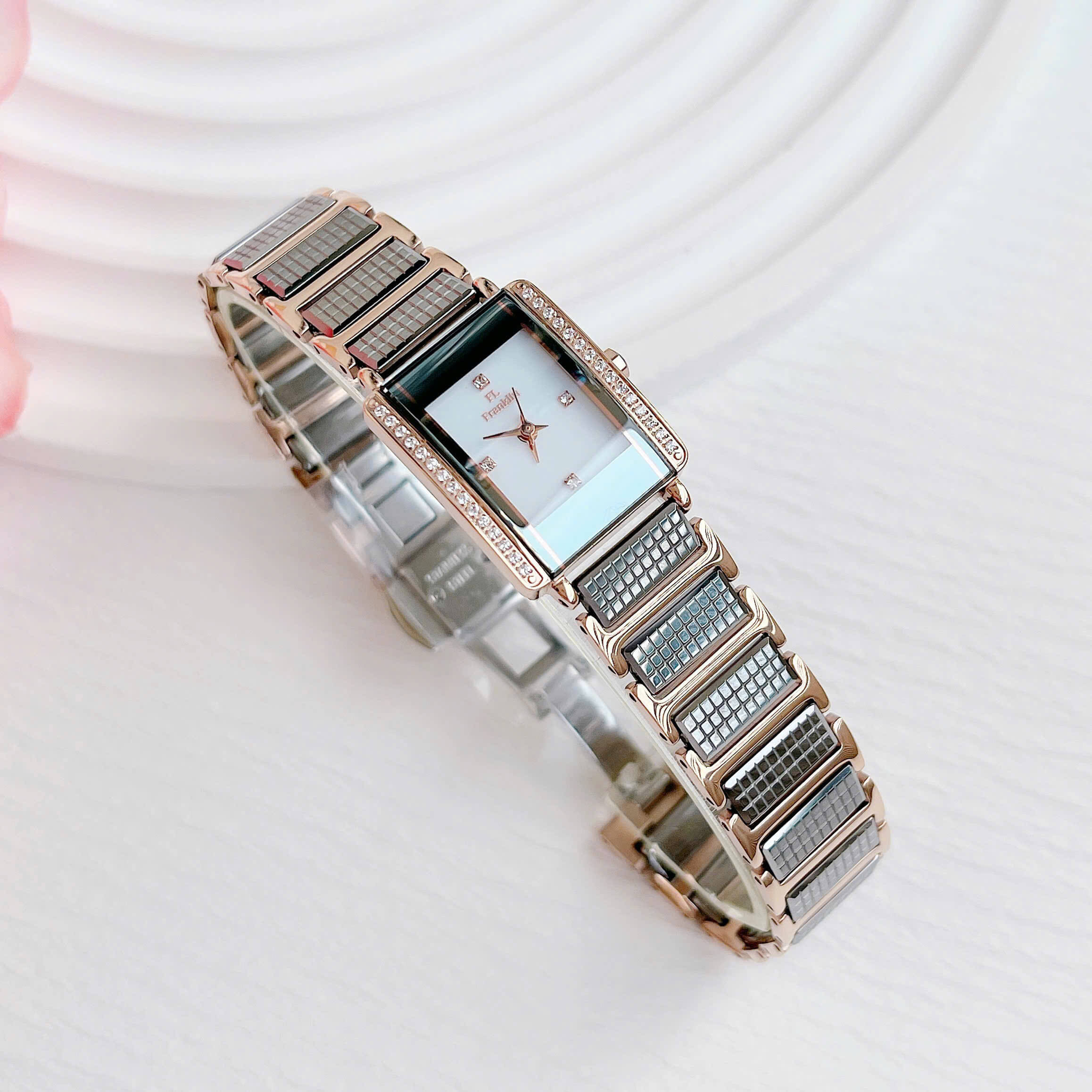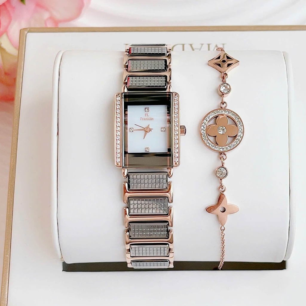 Thông số chi tiết sản phẩm: Đồng Hồ Nữ Franklin Dây Vỏ Inox Dáng Chữ Nhật Demi White Size 28mm Chính Hãng