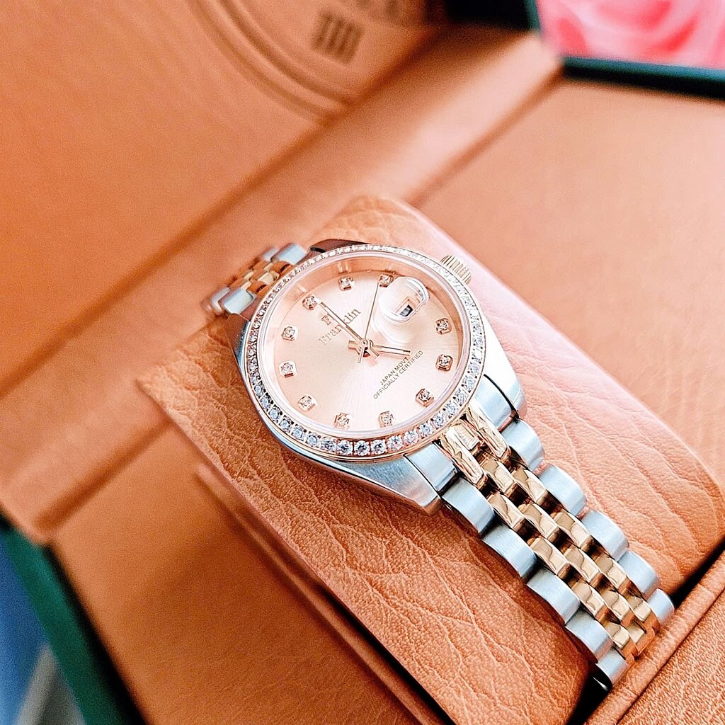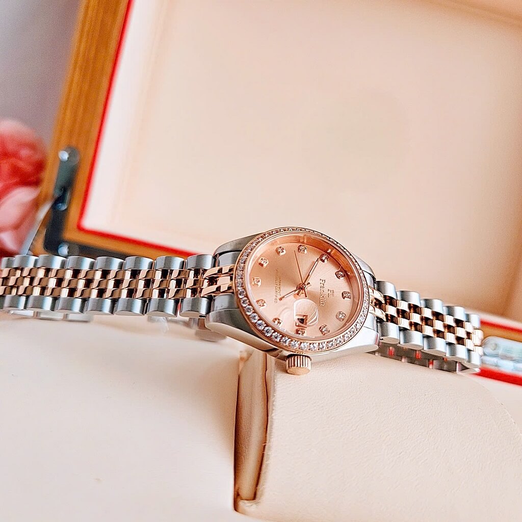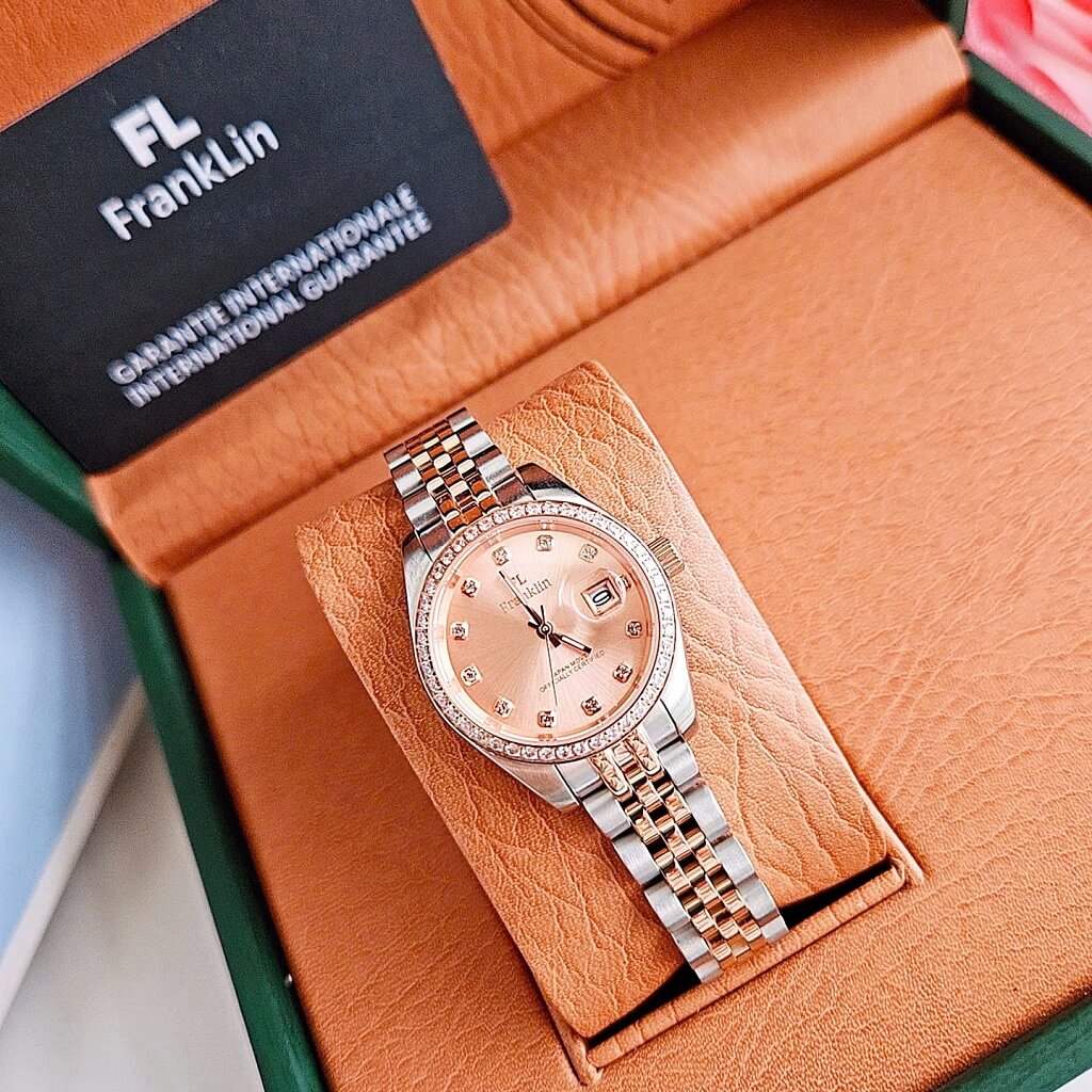 Đồng Hồ Nữ Franklin Dây Vỏ Inox Demi Rose Đính Đá Size 28mm Chính Hãng là một mẫu đồng hồ nữ cao cấp với thiết kế sang trọng và tinh tế. Dưới đây là một số đặc điểm nổi bật của sản phẩm: