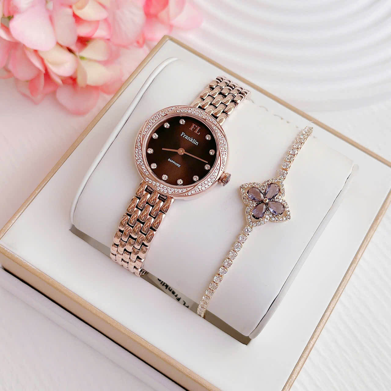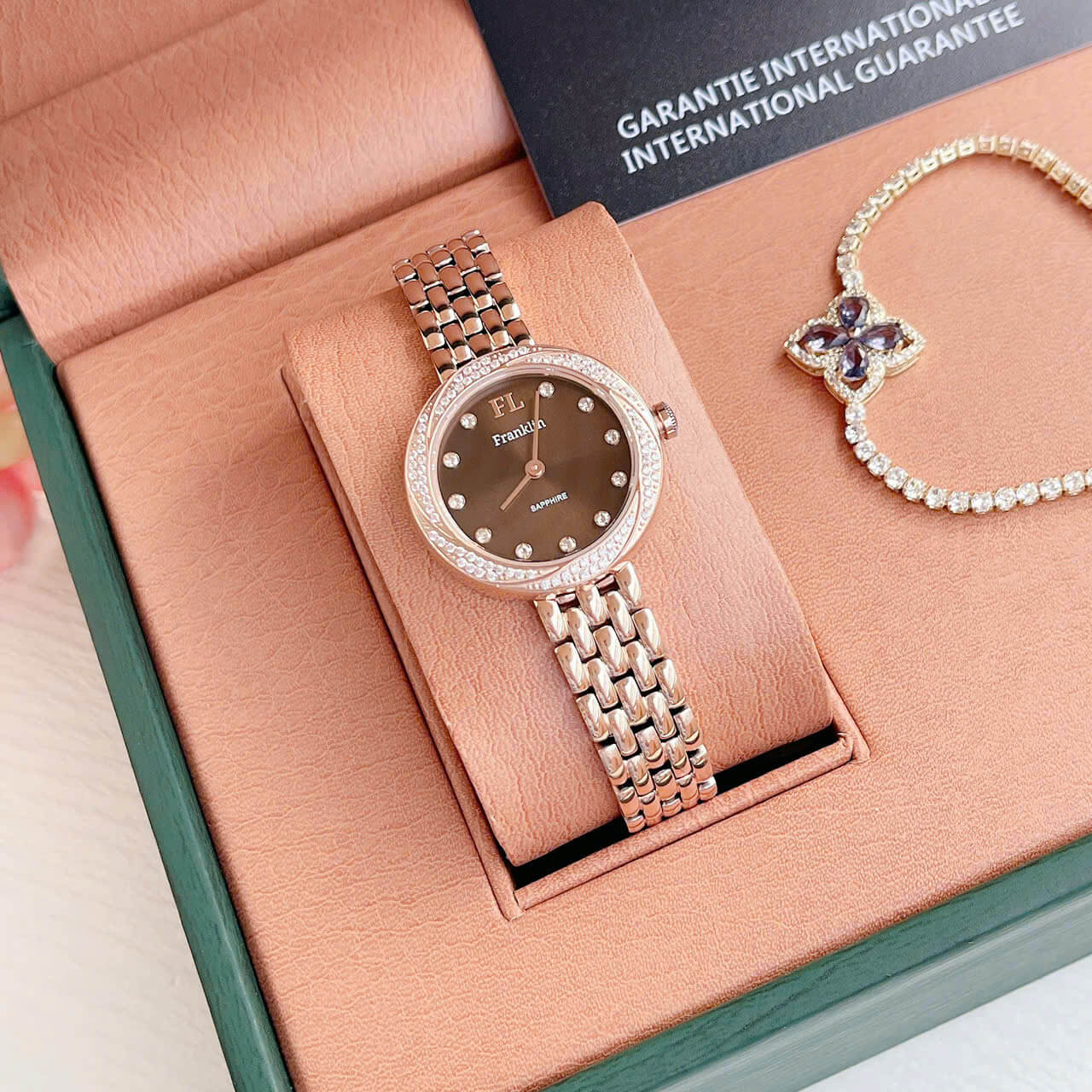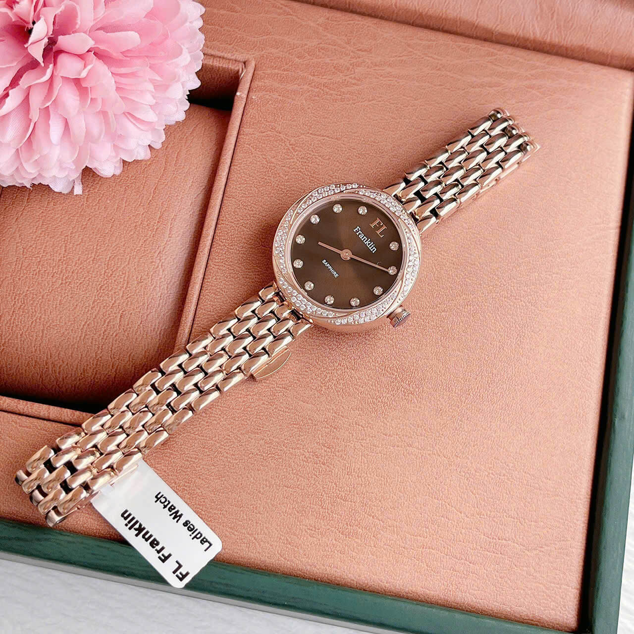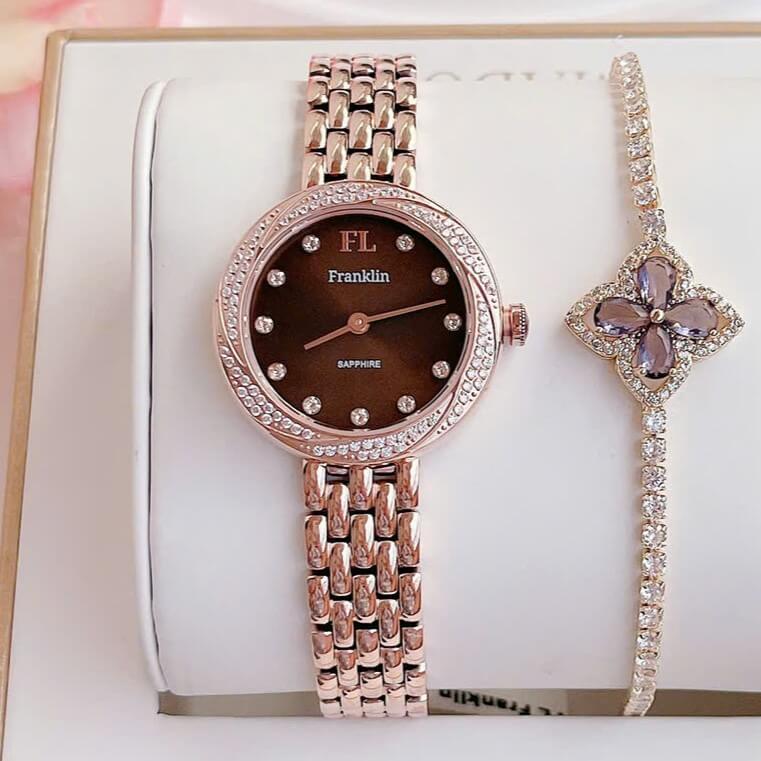 Tóm lại, đồng hồ nữ Franklin dây vỏ inox đính đá rose gold size 29mm chính hãng là sự kết hợp hoàn hảo giữa vẻ đẹp thẩm mỹ và chất lượng bền bỉ, là món phụ kiện không thể thiếu đối với những ai yêu thích sự tinh tế và sang trọng.