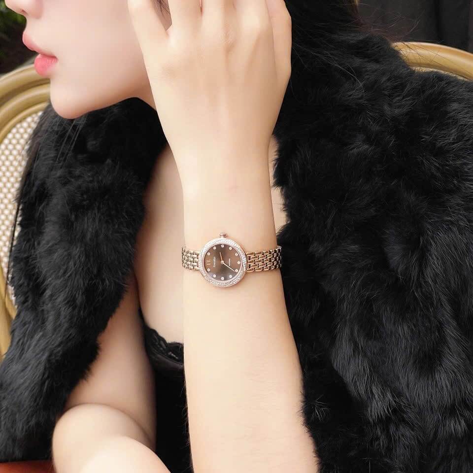 Với màu sắc rose gold (vàng hồng) nổi bật, chiếc đồng hồ này mang lại cảm giác thanh lịch và nữ tính. Rose gold là một trong những xu hướng màu sắc được yêu thích trong ngành công nghiệp đồng hồ, vì nó vừa có sự ấm áp, dịu dàng của màu vàng, lại vừa mang đến sự hiện đại và thời thượng của màu hồng. Đây là màu sắc dễ dàng phối hợp với nhiều trang phục, từ những bộ đồ công sở thanh lịch cho đến những bộ cánh dạo phố trẻ trung.