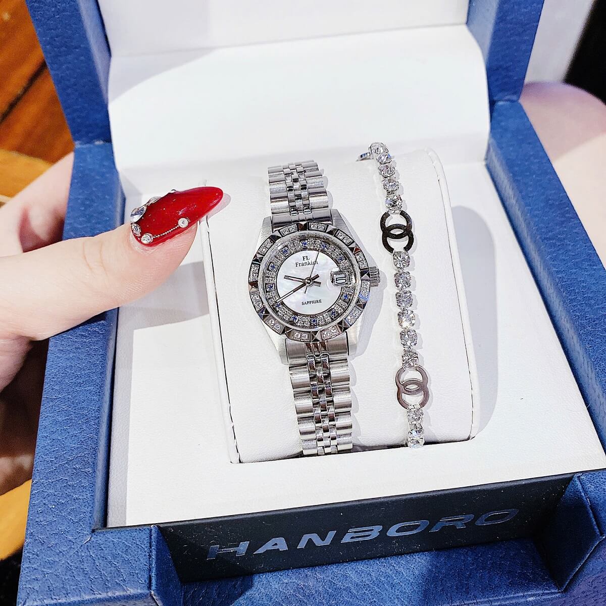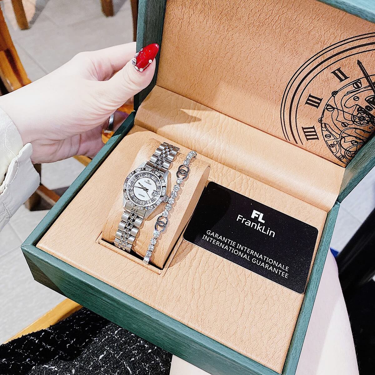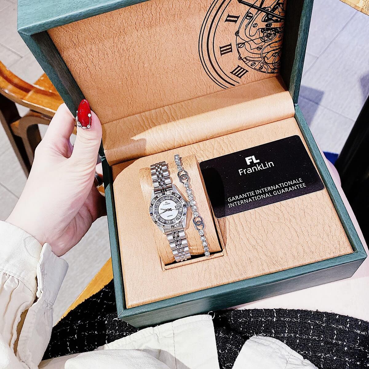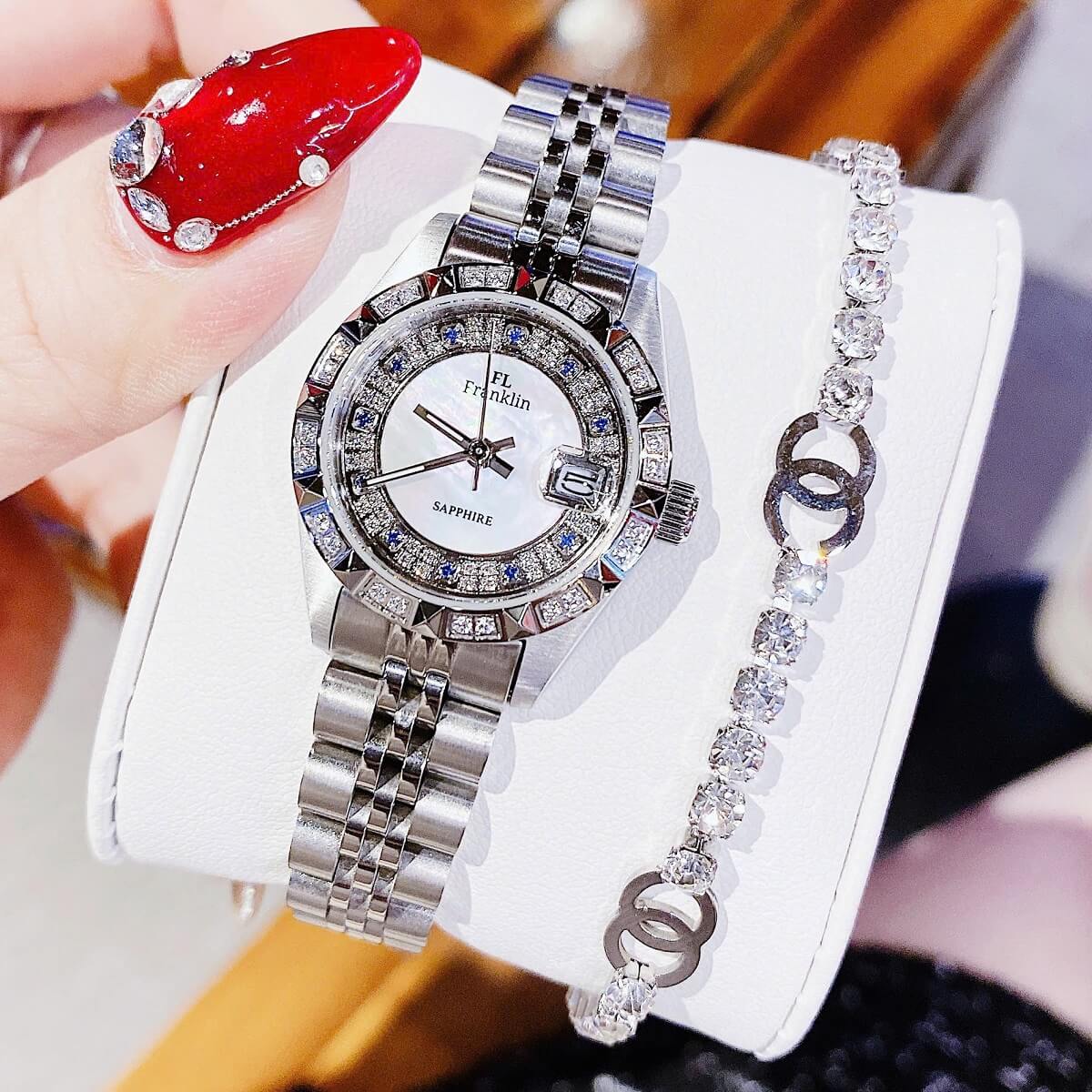 Đồng Hồ Nữ Franklin Dây Vỏ Inox Đính Đá Silver Size 26mm là một mẫu đồng hồ nữ sang trọng và tinh tế, phù hợp cho các quý cô yêu thích sự nhẹ nhàng và thanh lịch. Dưới đây là một số đặc điểm nổi bật của sản phẩm này: