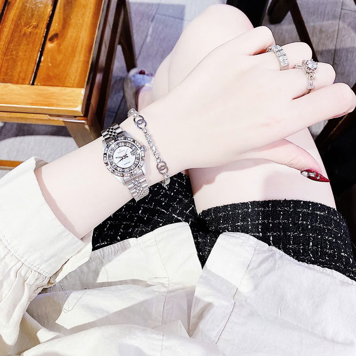 Đính Đá: Mặt đồng hồ được đính đá, giúp tạo điểm nhấn nổi bật, tôn lên sự quý phái và tinh tế.