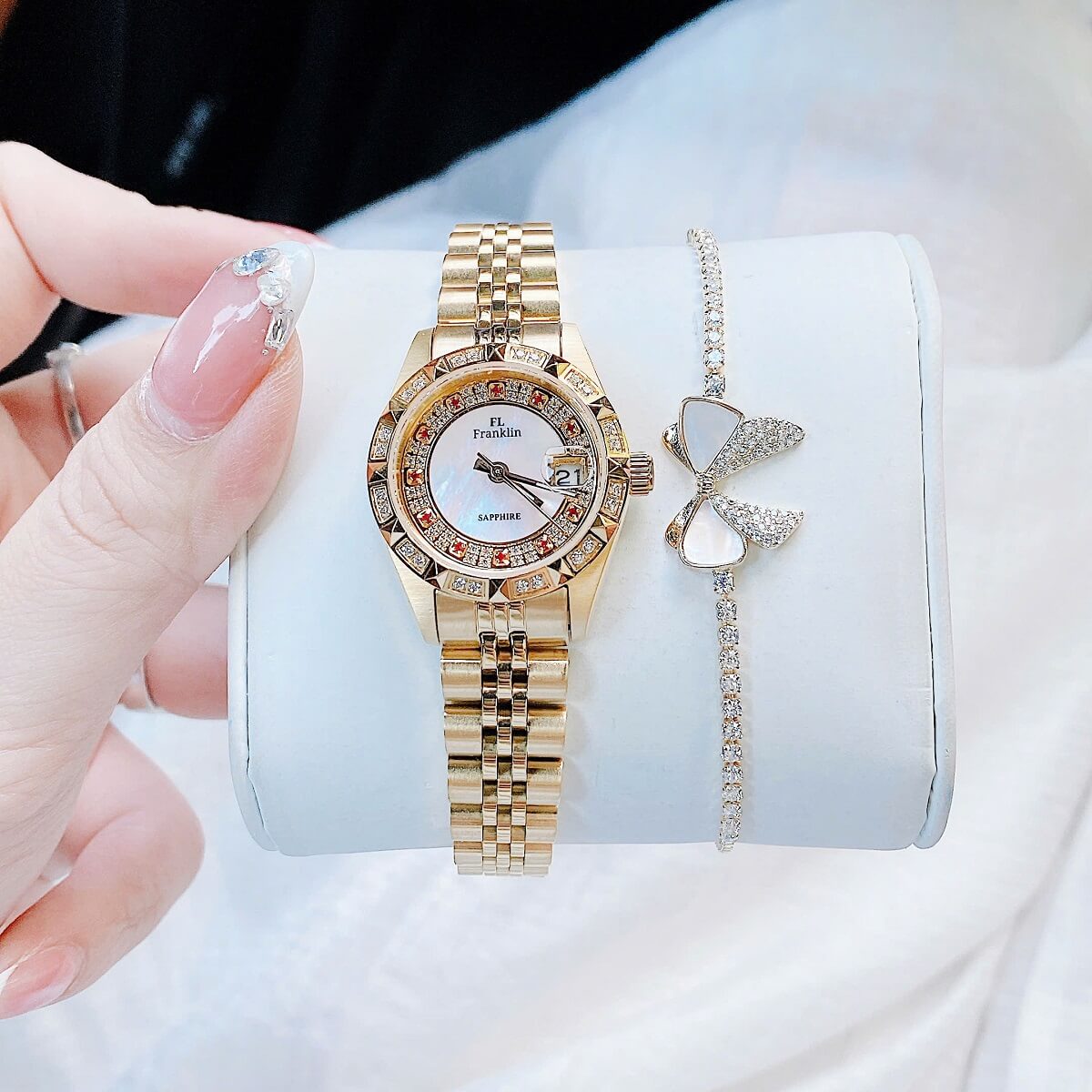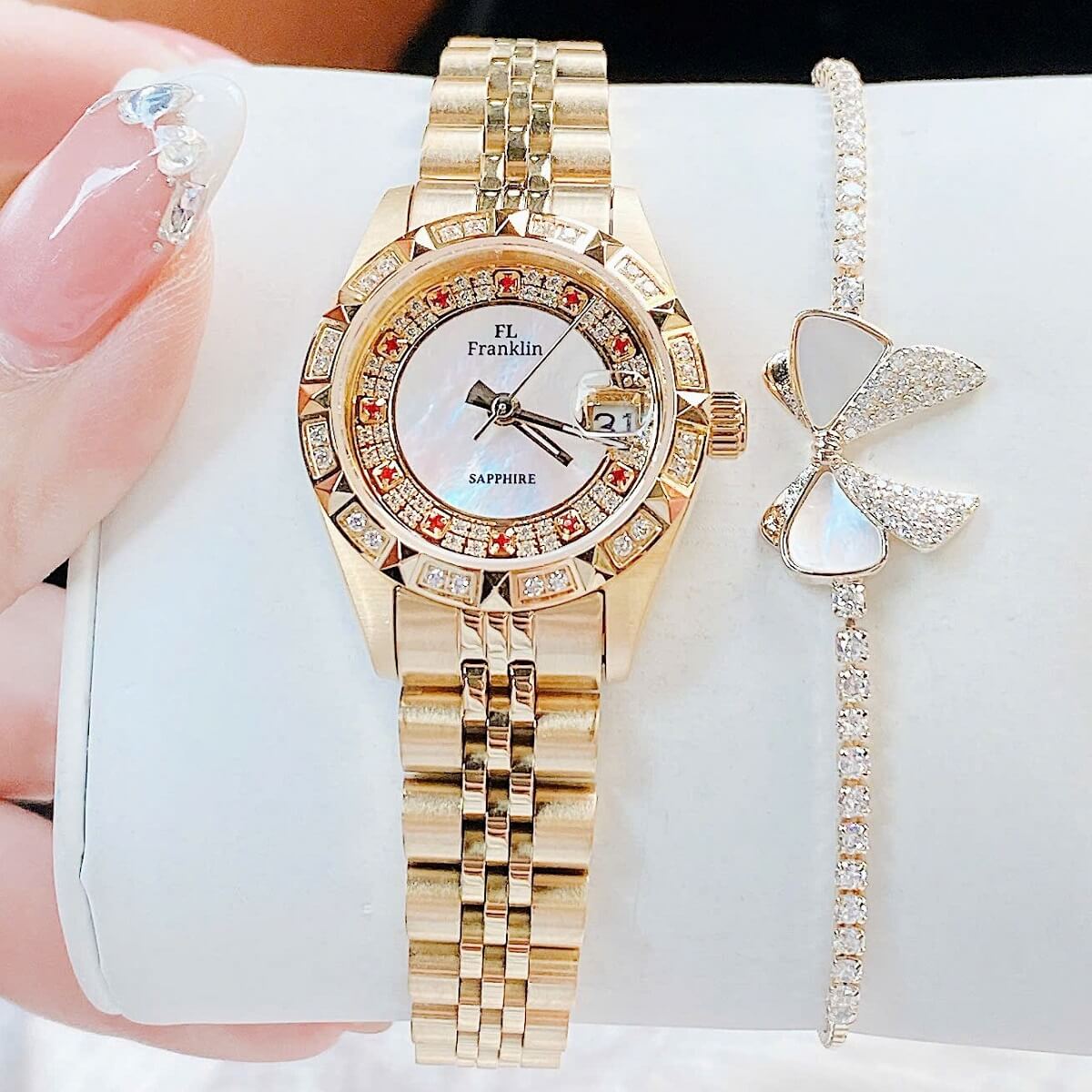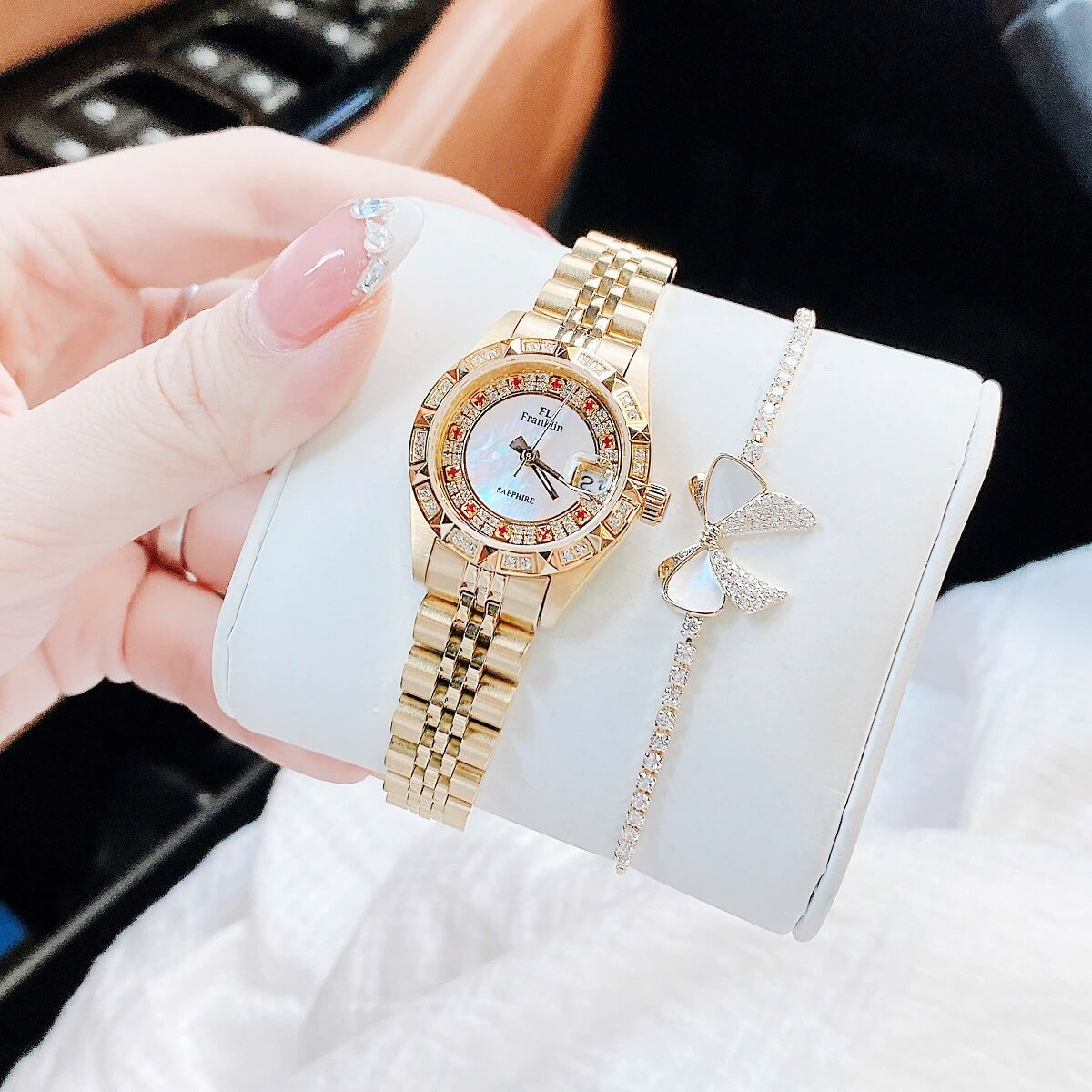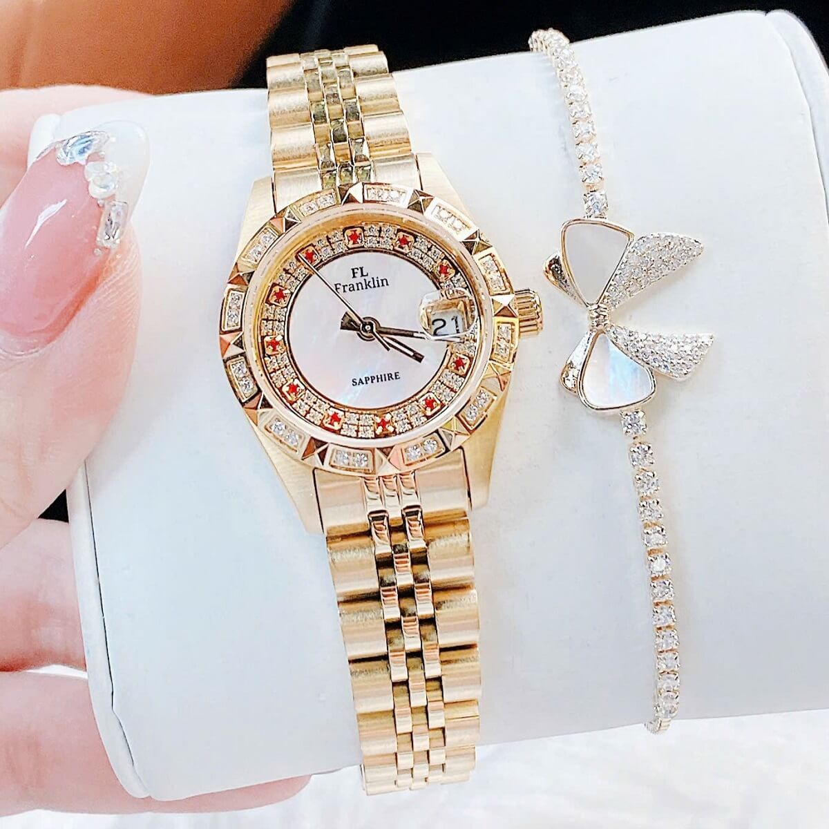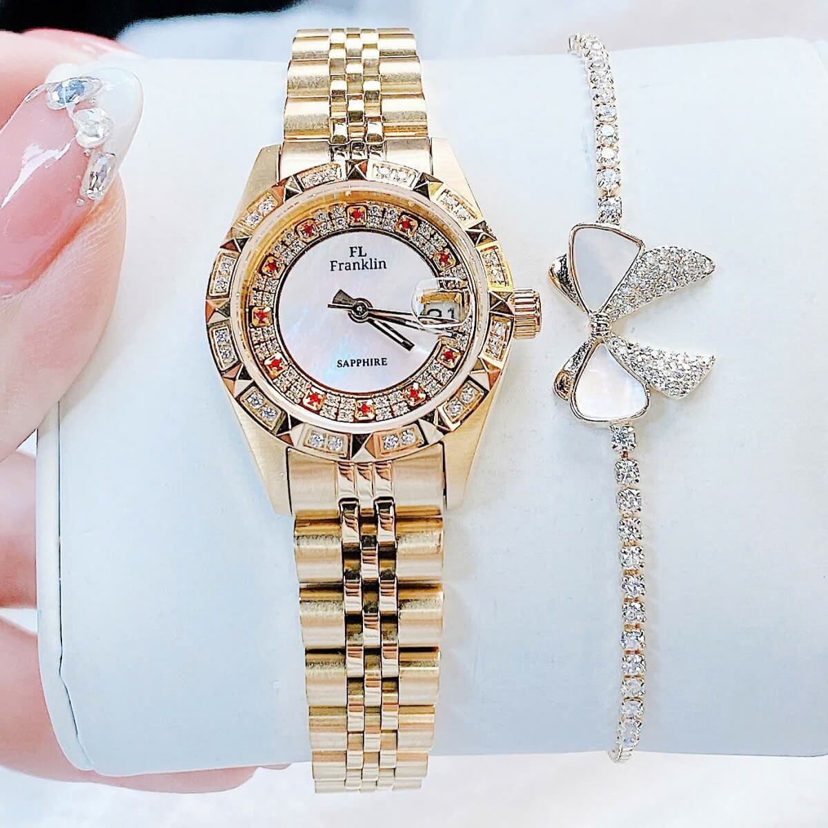 Thông số chi tiết sản phẩm: Đồng Hồ Nữ Franklin Dây Vỏ Inox Full Vàng Size 26mm Chính Hãng