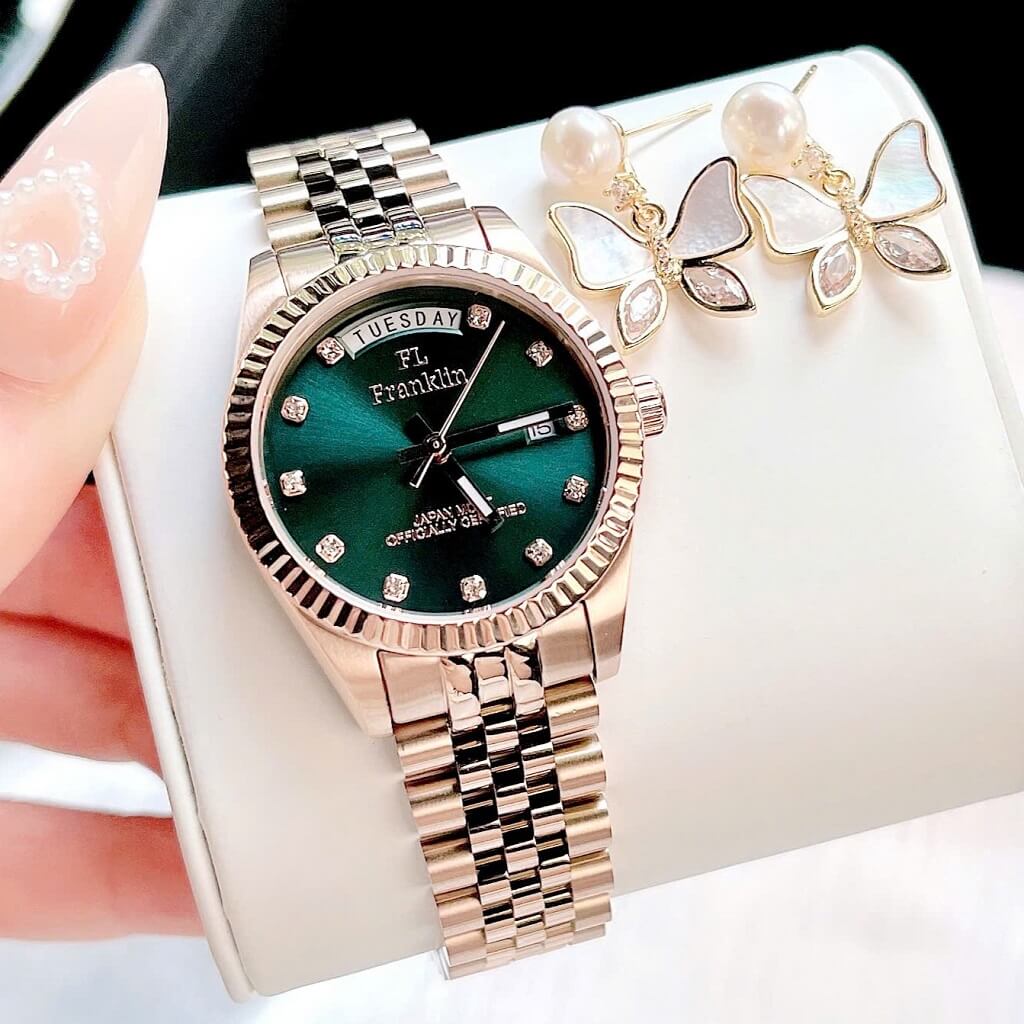 Thông số chi tiết sản phẩm: Đồng Hồ Nữ Franklin Dây Vỏ Inox Demi Rose 2 Lịch Size 32mm Chính Hãng