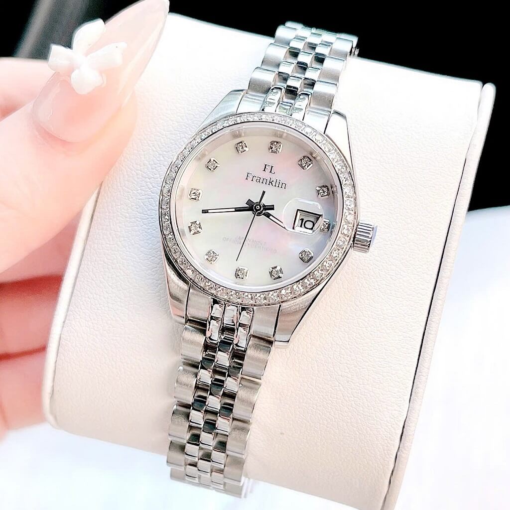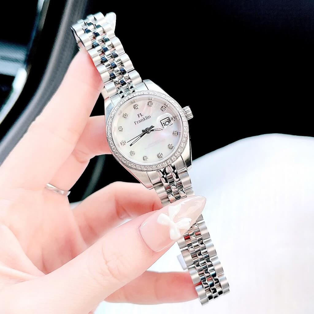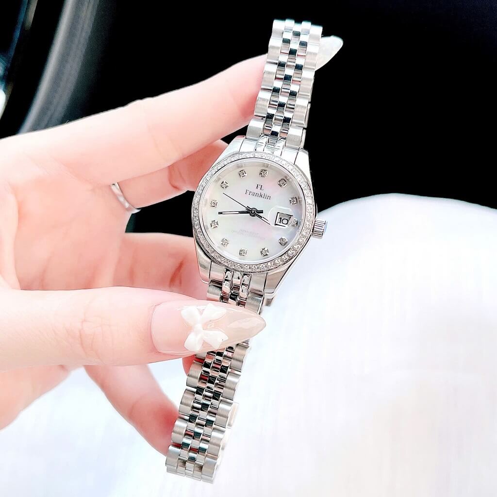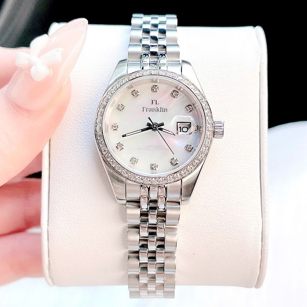 Thông số chi tiết sản phẩm: Đồng Hồ Nữ Franklin Dây Vỏ Inox Silver White Đính Đá Size 28mm Chính Hãng