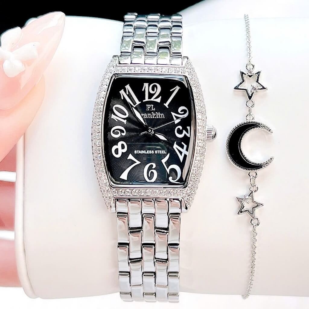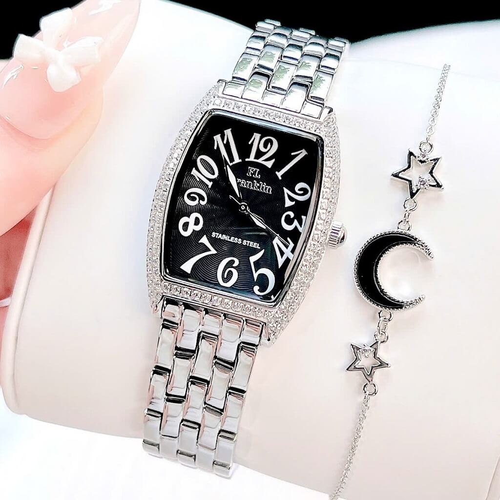 Chiếc đồng hồ nữ Franklin FL24911 mặt đen đính đá viền bạc sẽ là điểm nhấn hoàn hảo trên cổ tay bạn – kết hợp giữa phong cách hiện đại và thiết kế cao cấp, phù hợp cho cả đi làm, đi chơi hay dự tiệc.