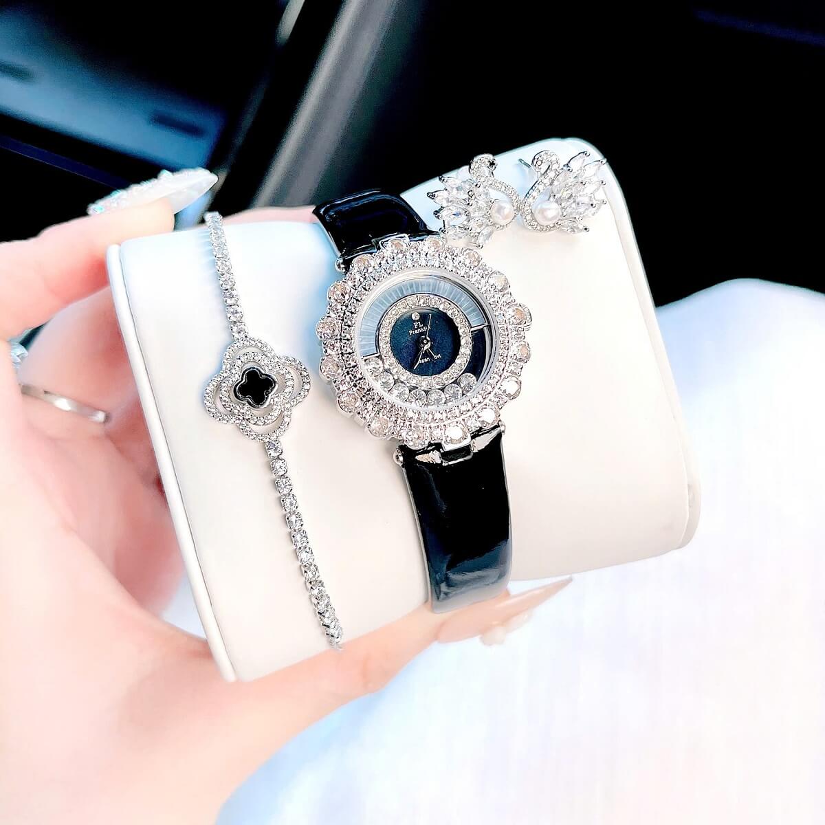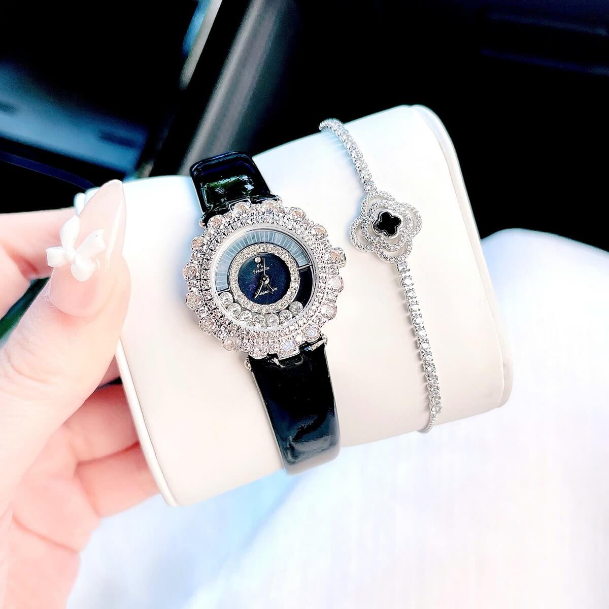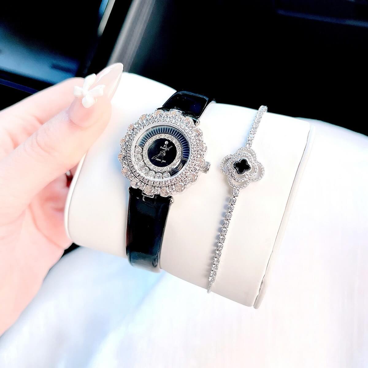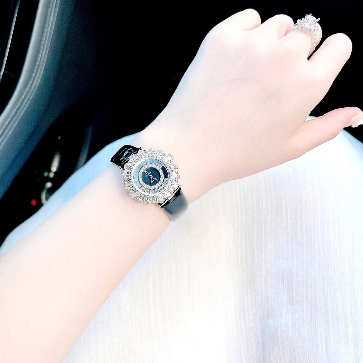 Dây đeo của đồng hồ là dây da màu đen, mềm mại nhưng chắc chắn, tạo cảm giác thoải mái khi đeo trong suốt cả ngày dài. Dây da đen không chỉ đem lại vẻ ngoài tinh tế mà còn dễ dàng kết hợp với nhiều bộ trang phục khác nhau, từ những bộ đồ công sở lịch sự cho đến những bộ váy dạo phố quyến rũ. Chất liệu dây da cũng đảm bảo độ bền và tính năng chống mài mòn tốt, giúp đồng hồ giữ được vẻ đẹp lâu dài.