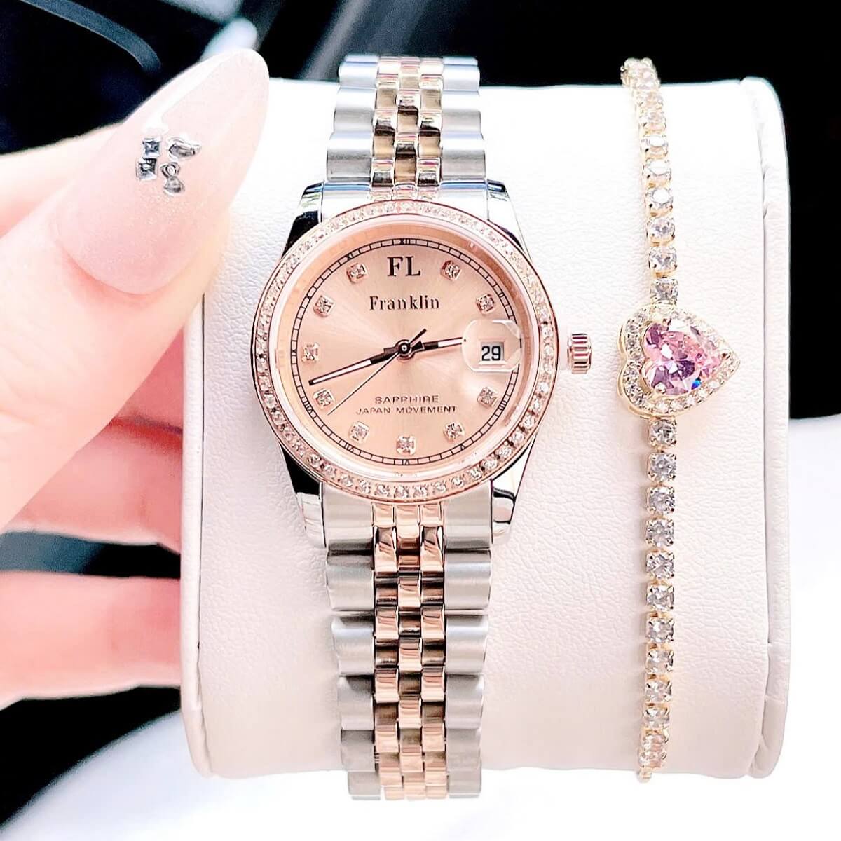 Đồng hồ nữ Franklin FL4412 là một trong những mẫu đồng hồ nổi bật và đẳng cấp trong dòng sản phẩm của thương hiệu Franklin. Với thiết kế sang trọng và tinh tế, chiếc đồng hồ này không chỉ là một phụ kiện thời trang mà còn là một món đồ thể hiện phong cách và gu thẩm mỹ của người đeo. Dưới đây là những đặc điểm chi tiết khiến mẫu đồng hồ này trở thành một sự lựa chọn tuyệt vời cho phái đẹp: