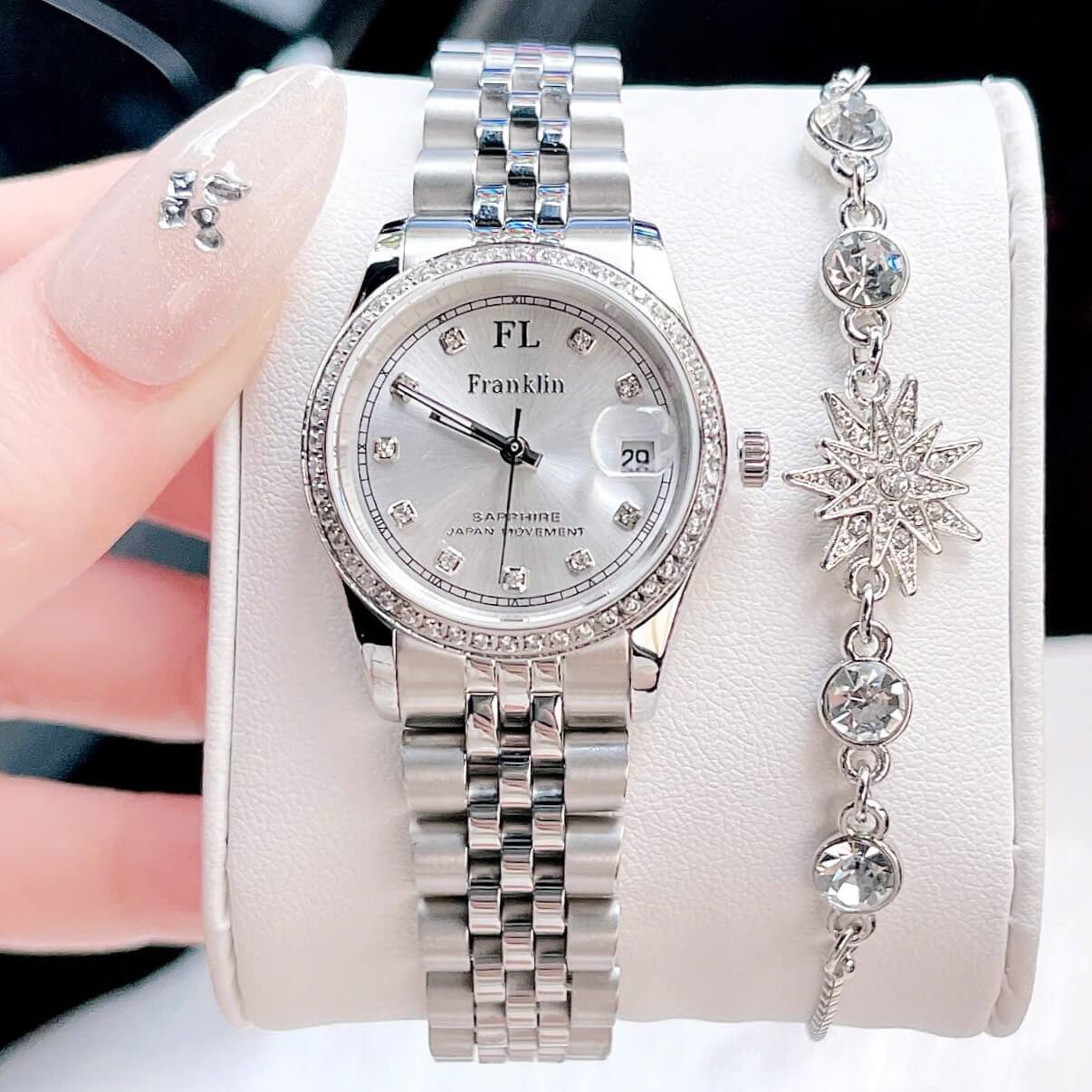 Tóm lại, đồng hồ nữ Franklin FL4412 dây vỏ inox silver đính đá size 28mm là một sản phẩm kết hợp giữa sự thanh lịch, sang trọng và chất lượng bền bỉ. Đây chắc chắn sẽ là một sự lựa chọn lý tưởng cho những ai đang tìm kiếm một chiếc đồng hồ không chỉ để xem giờ mà còn là một món phụ kiện thời trang đẳng cấp.