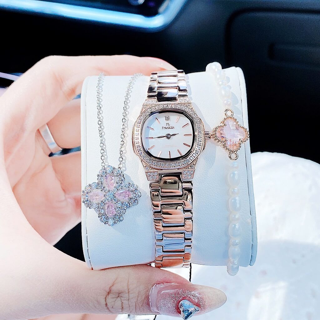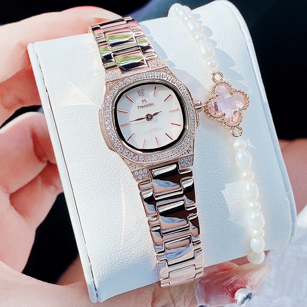 Đồng hồ nữ Franklin FL5388 với mặt số trắng xà cừ thanh thoát, kết hợp với màu sắc rose gold quyến rũ và thiết kế đính đá tinh tế, chính là món phụ kiện hoàn hảo cho những cô nàng yêu thích sự sang trọng và thanh lịch. Với đường kính mặt đồng hồ chỉ 26mm, sản phẩm này không chỉ dễ dàng phối hợp với nhiều loại trang phục, mà còn mang đến vẻ đẹp tinh tế, nhẹ nhàng, phù hợp cho mọi dịp.