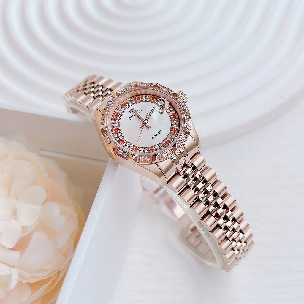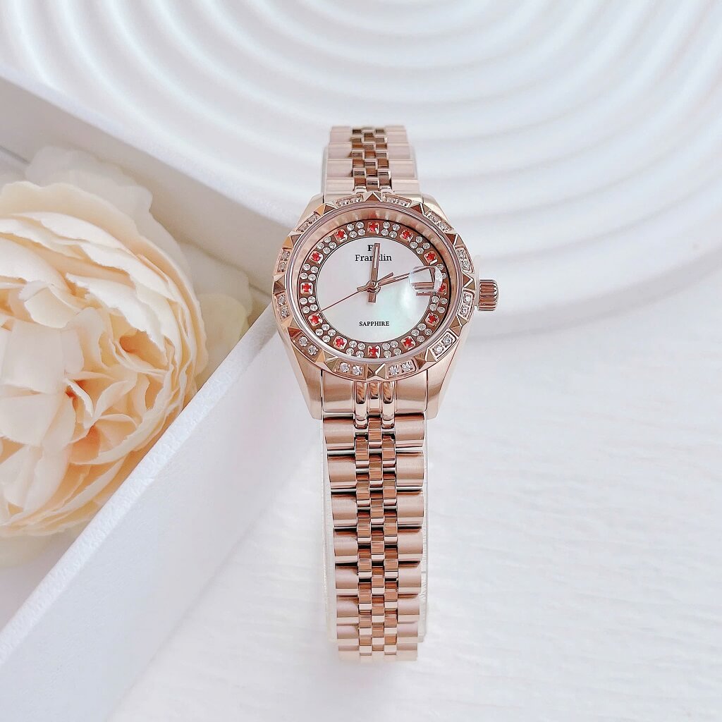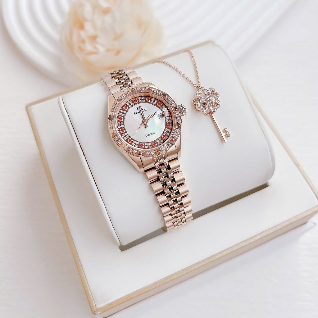 Số lượng có hạn – Đặt hàng ngay hôm nay để sở hữu chiếc đồng hồ nữ mặt xà cừ vỏ rose gold đính đá sang trọng và đẳng cấp từ Franklin.