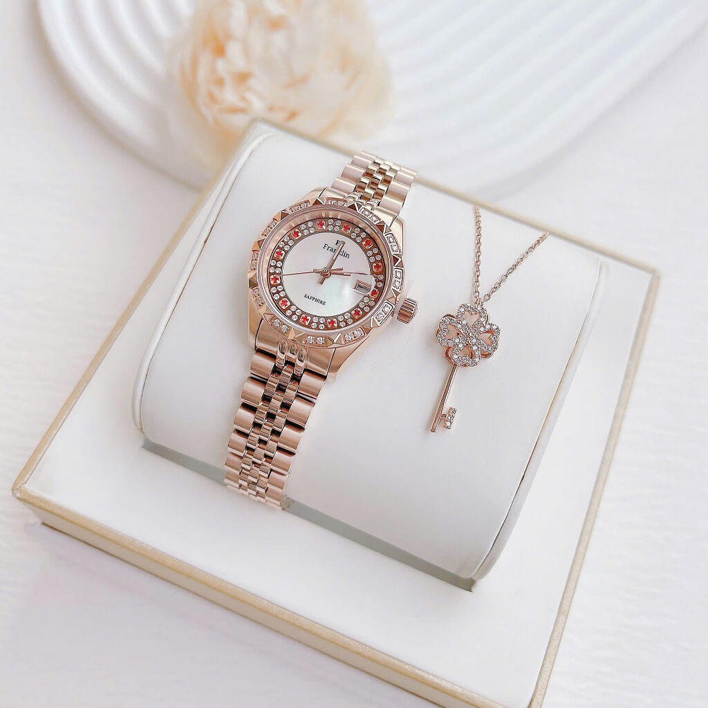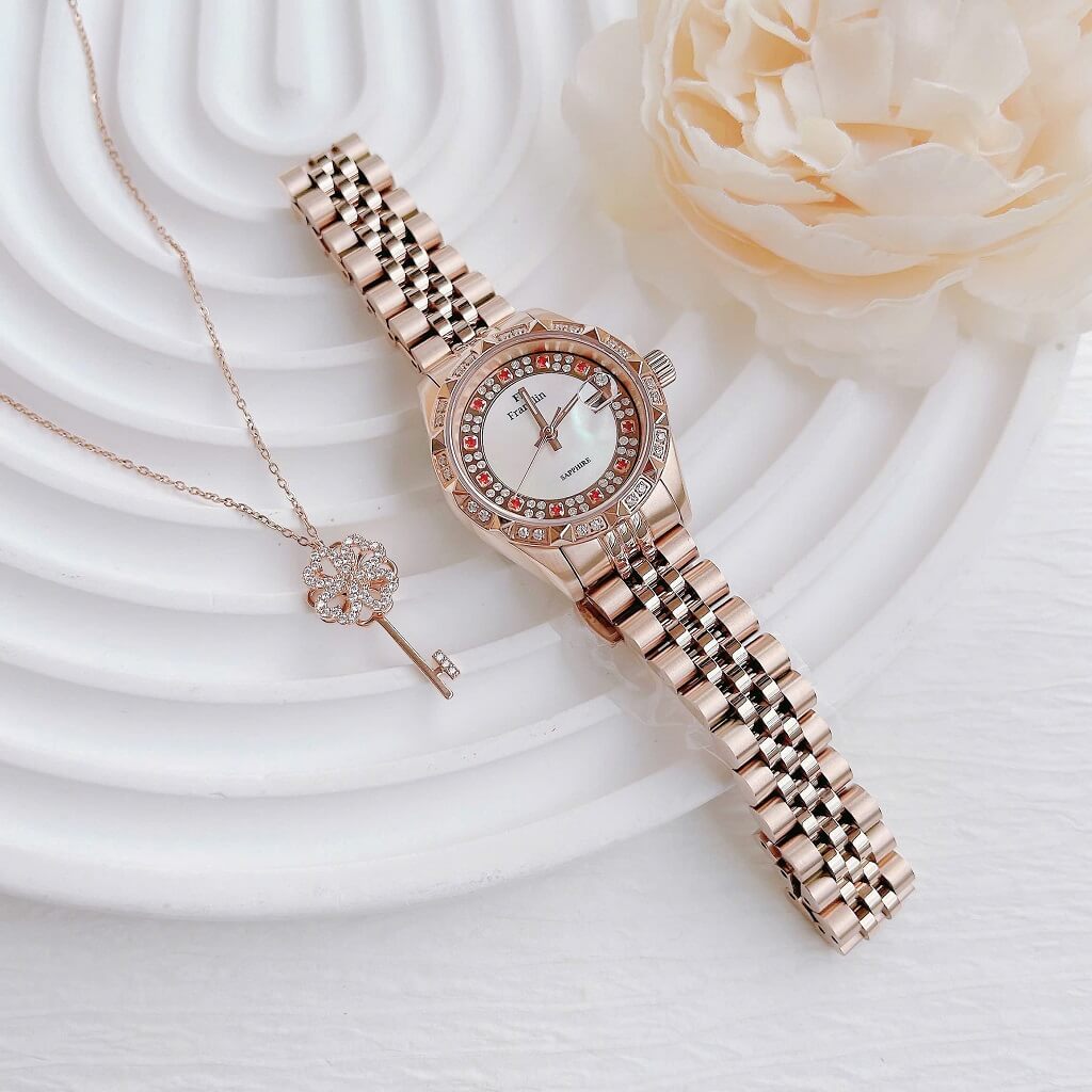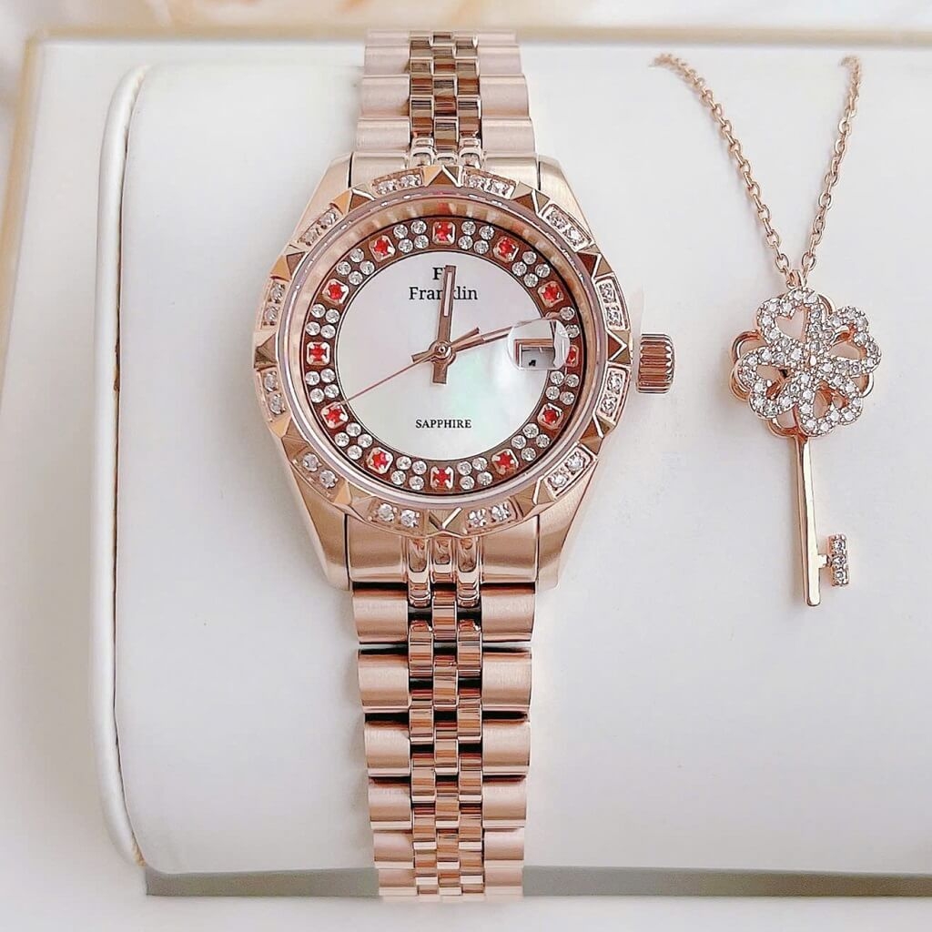 Số lượng có hạn – Đặt hàng ngay hôm nay để sở hữu chiếc đồng hồ nữ mặt xà cừ vỏ rose gold đính đá sang trọng và đẳng cấp từ Franklin.