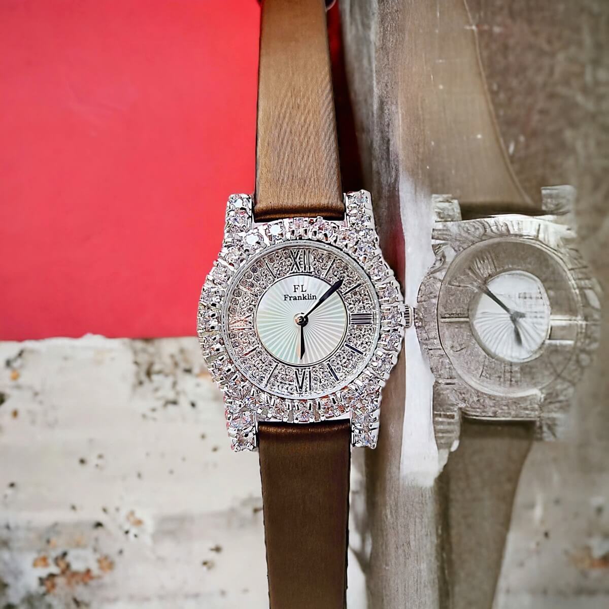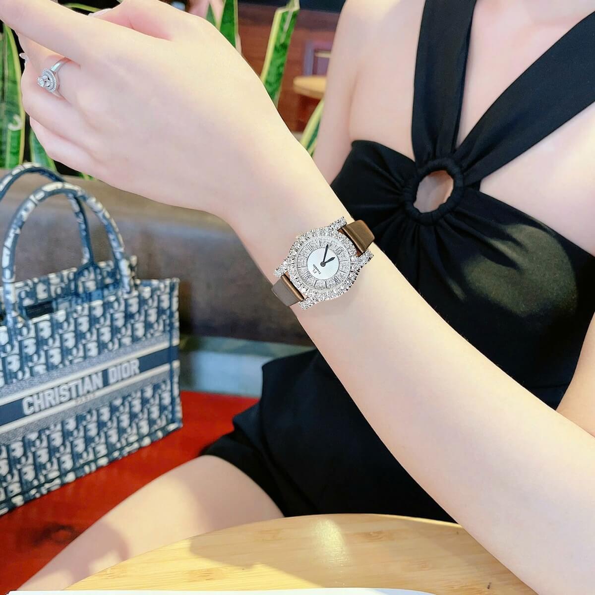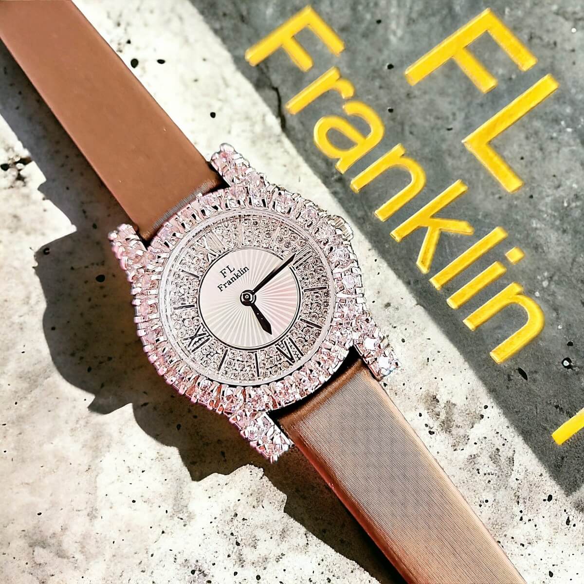 Đồng hồ Franklin FL9099 sở hữu mặt đồng hồ với thiết kế đơn giản nhưng đầy cuốn hút. Mặt đồng hồ có màu sáng, kết hợp với các chi tiết đính đá xung quanh viền, tạo nên vẻ lấp lánh và sang trọng. Những viên đá này không chỉ làm tăng tính thẩm mỹ mà còn thể hiện sự tỉ mỉ, tinh tế trong thiết kế. Các vạch số và kim đồng hồ được làm sắc nét, dễ nhìn, mang đến sự tiện lợi cho người dùng khi xem giờ, đồng thời vẫn giữ được vẻ đẹp thanh thoát và dễ dàng kết hợp với nhiều phong cách thời trang khác nhau.