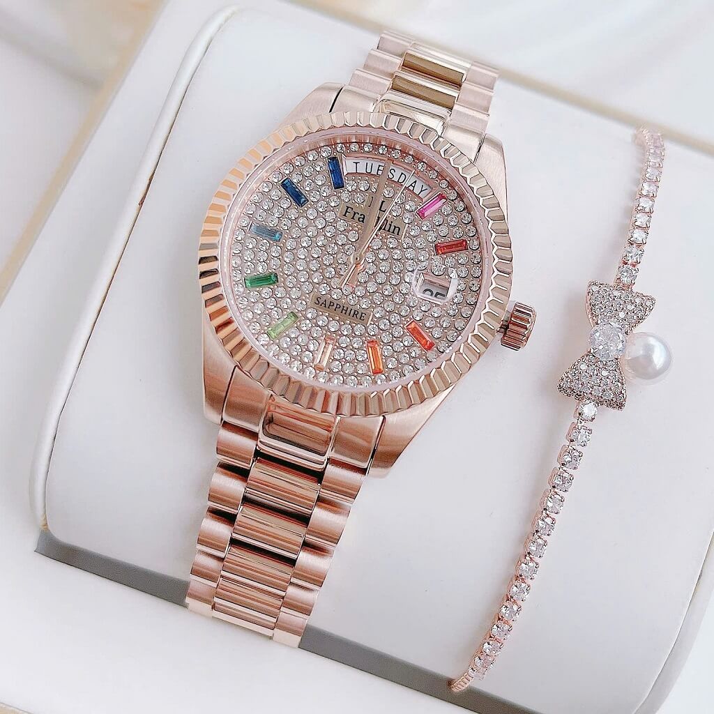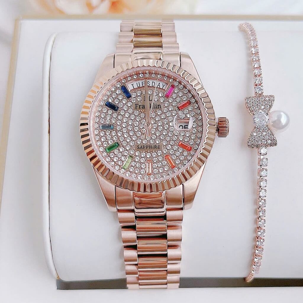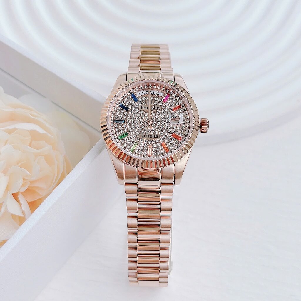 Chiếc Đồng Hồ Nữ Franklin Mặt Đá Màu – Vỏ Vàng Hồng – Size 32mm chính là lựa chọn lý tưởng cho những cô nàng yêu thích sự tinh tế, hiện đại nhưng không hòa lẫn.