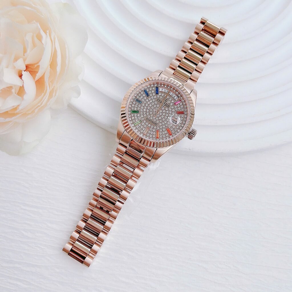 Tông vàng hồng (rose gold) đang là xu hướng được ưa chuộng trong thời trang nữ. Vỏ đồng hồ Franklin được mạ màu vàng hồng cao cấp, giúp tôn làn da tay, mang đến cảm giác ấm áp, sang trọng và cực kỳ dễ phối đồ – từ váy nhẹ nhàng đến outfit công sở hiện đại.