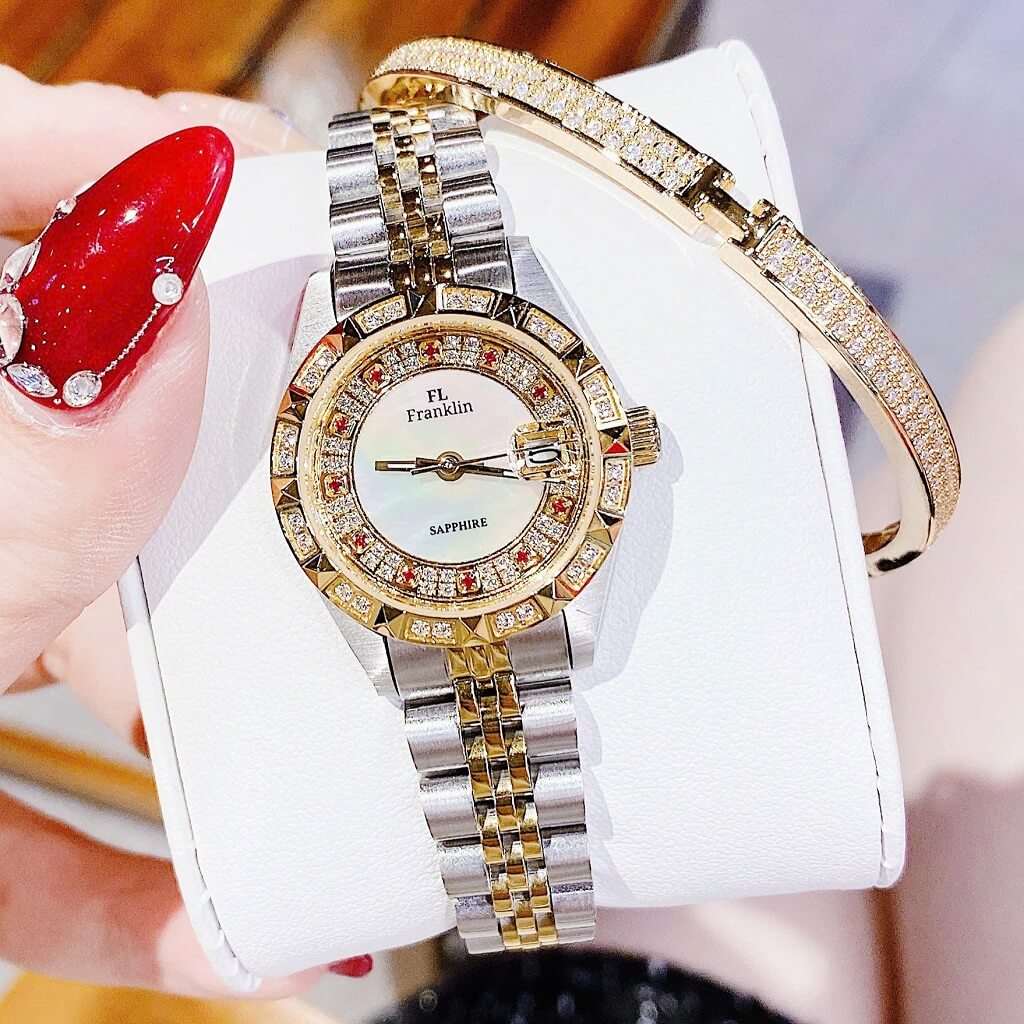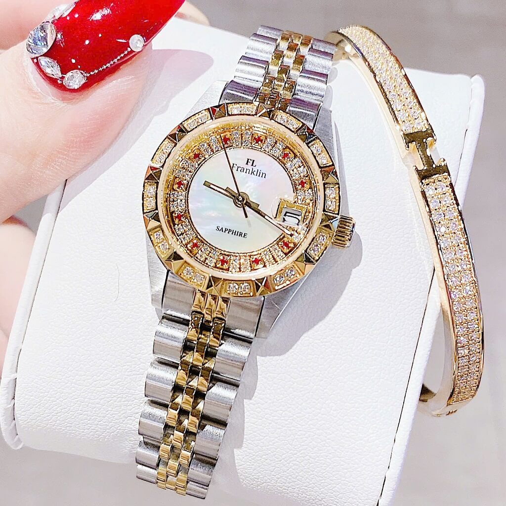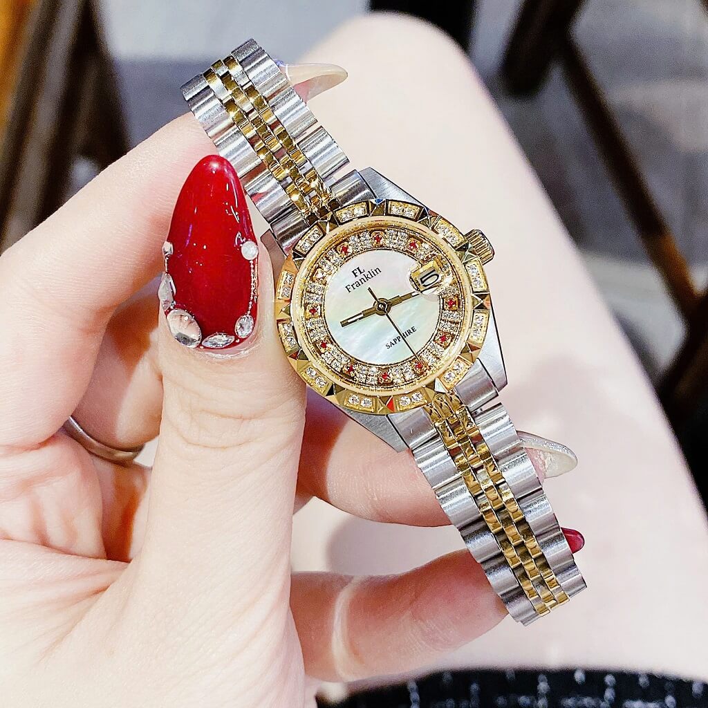 Lý do nên chọn Franklin mặt xà cừ demi gold đính đá: