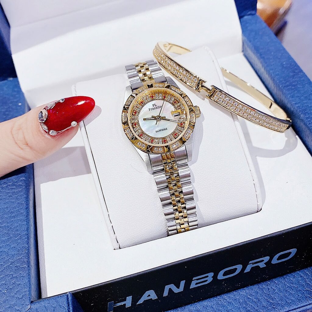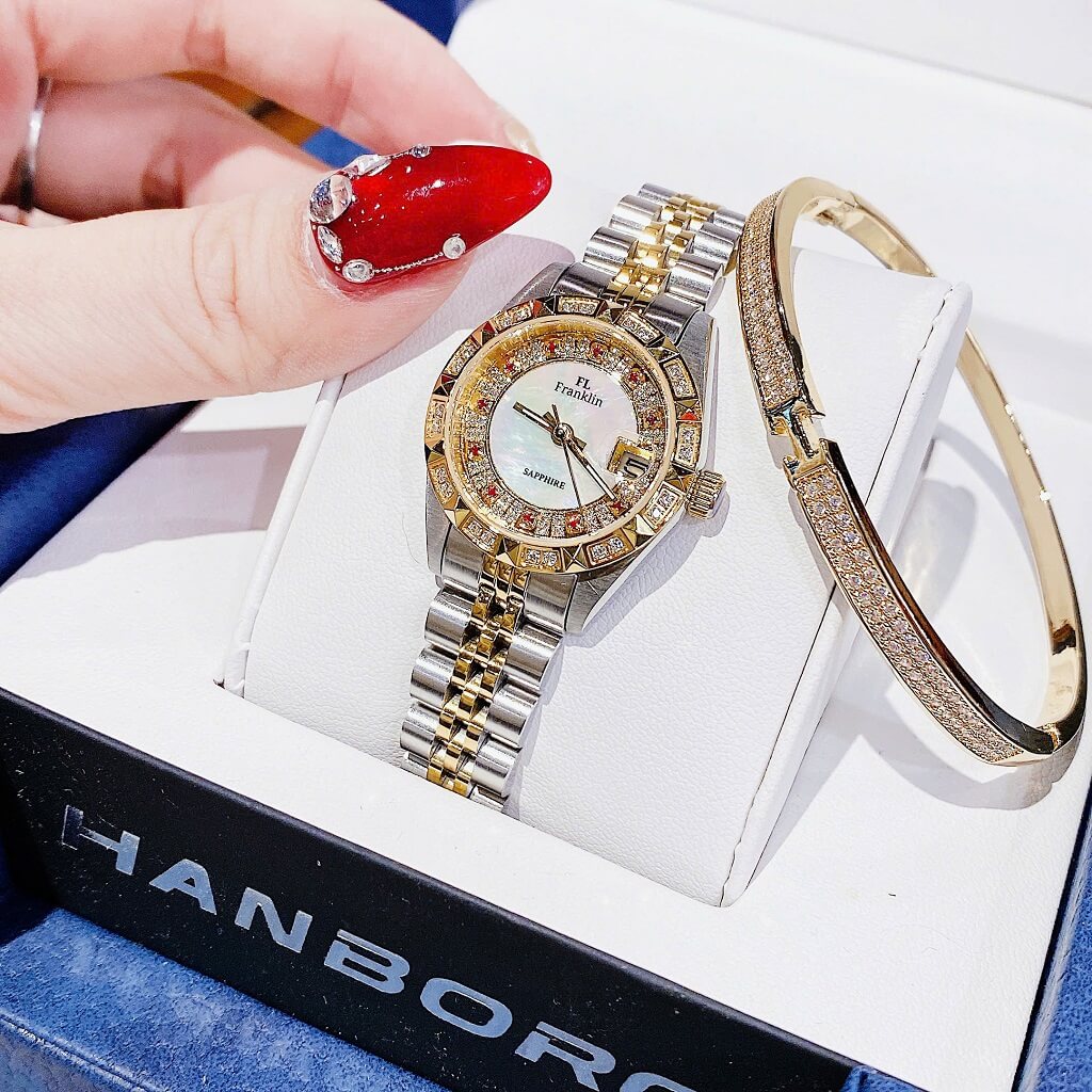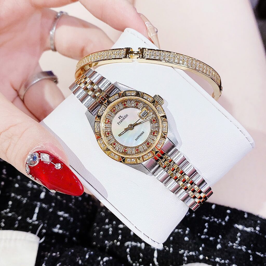 Lý do nên chọn Franklin mặt xà cừ demi gold đính đá: