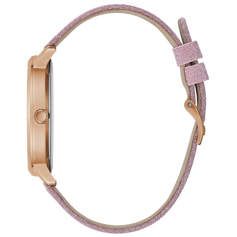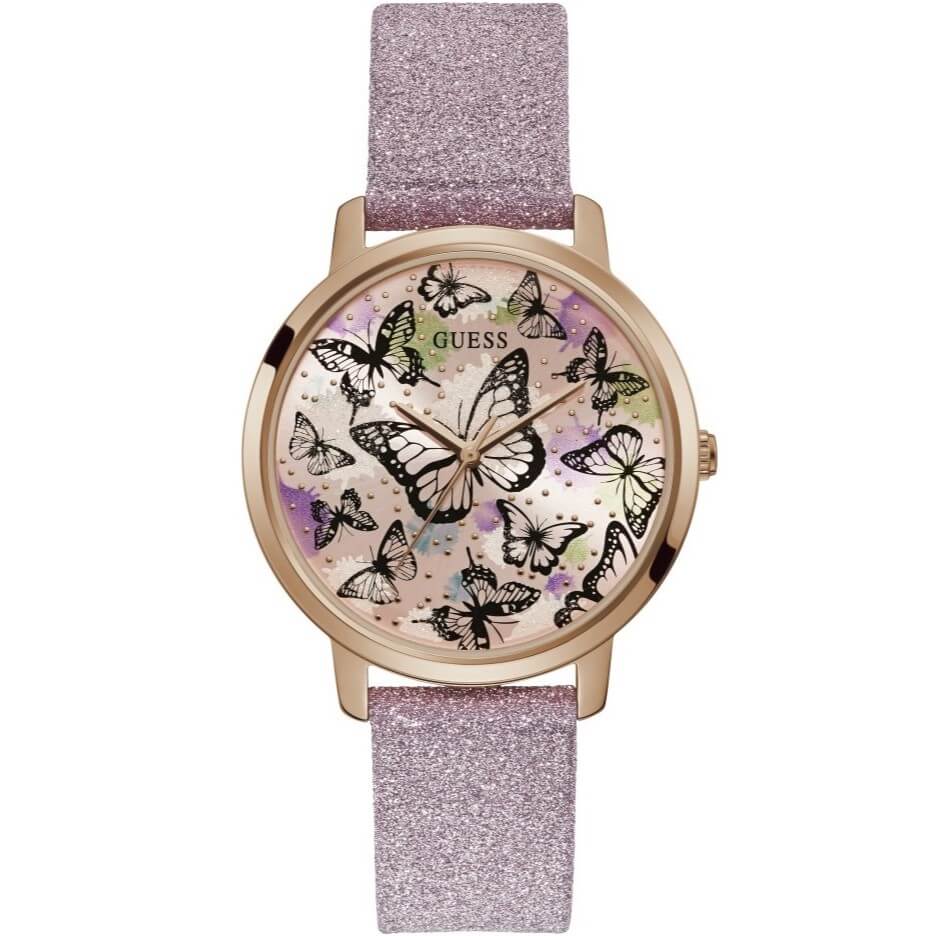 Đồng hồ Guess dây da màu hồng dành cho nữ, mặt họa tiết bướm nữ tính