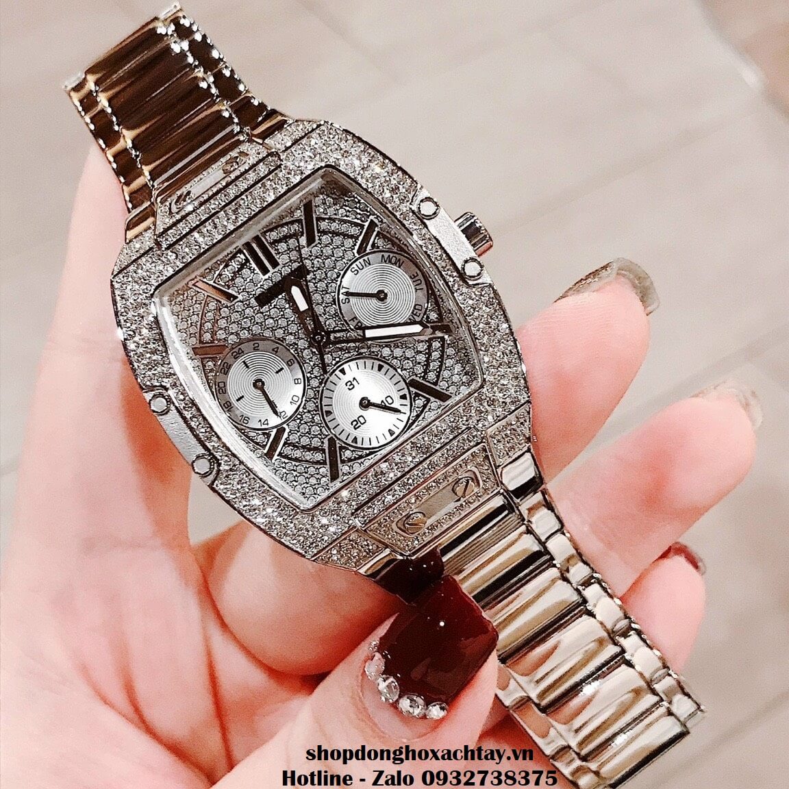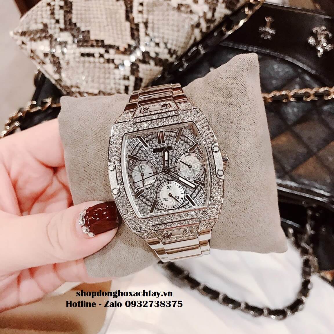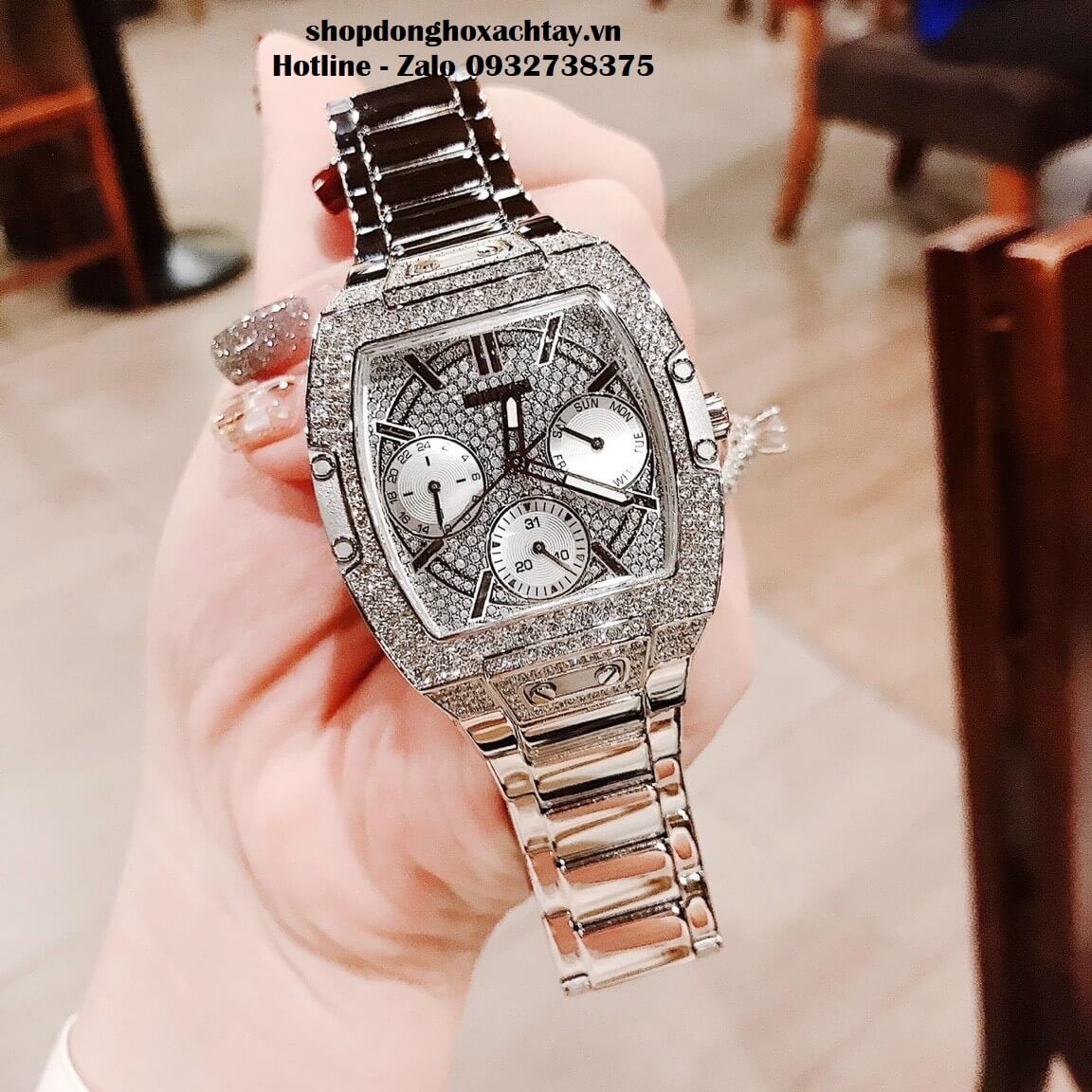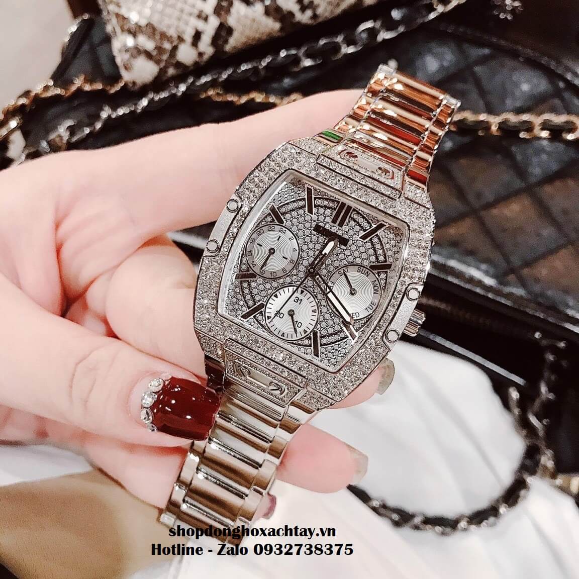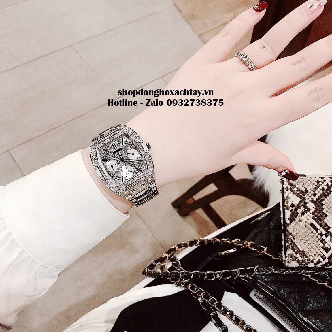 Hình ảnh thực tế Đồng Hồ Nữ Guess GW0104L1 39mm Mặt Vuông Đính Đá Màu Bạc