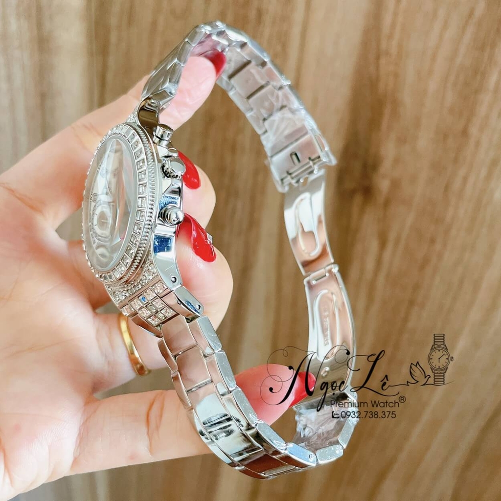 Dây thép không gỉ cao cấp, mặt chạy full 6 kim được thiết kế đính đá sáng lấp lanh, sang trọng và tinh tế