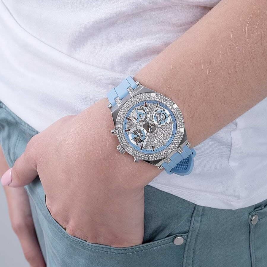 Đồng hồ Guess chính hãng dành cho nữ, dây silicon màu xanh dương nhạt thanh lịch