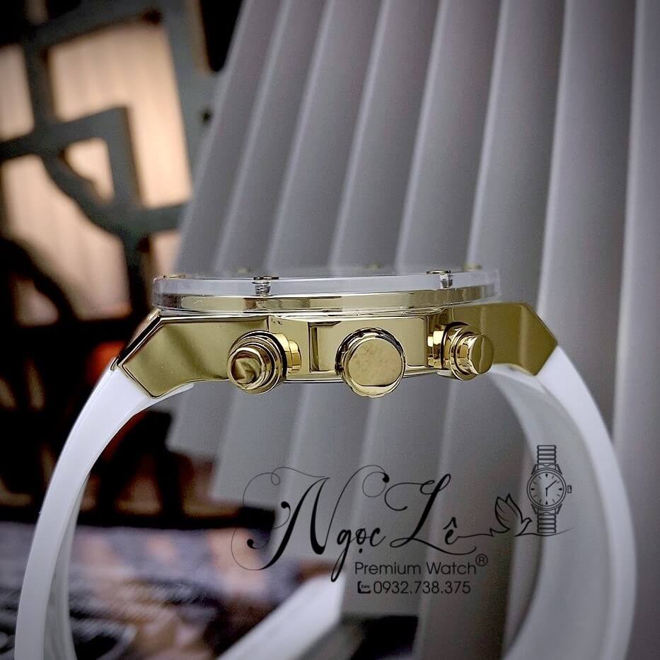 Dây cao su màu trắng mềm dẻo đeo êm tay, vỏ thép không gỉ cực sáng