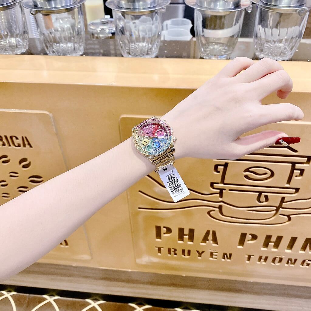 - Size mặt 38mm, mặt số đính đá đa sắc màu tuyệt đẹp
